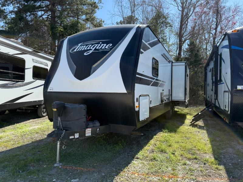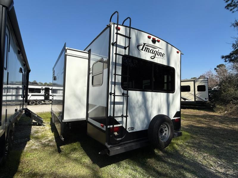 The Imagine travel trailer is designed for durability, comfort, and convenience. Features like oversized tank capacities allow for extended stays off-grid, while the exclusive drop-frame pass-through storage provides 47 cu. ft. of space for your gear. Inside, enjoy upgraded residential furniture, large panoramic windows, motion sensor lighting in key areas, and a Bluetooth stereo. Plus, the three-year limited structural warranty gives you added peace of mind.