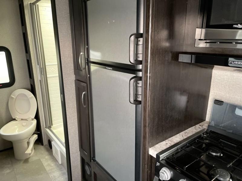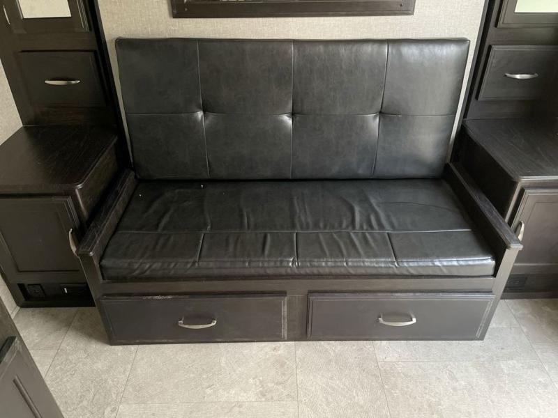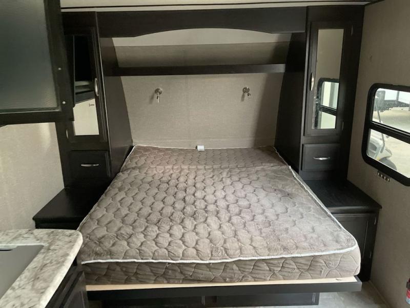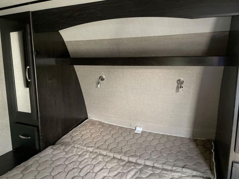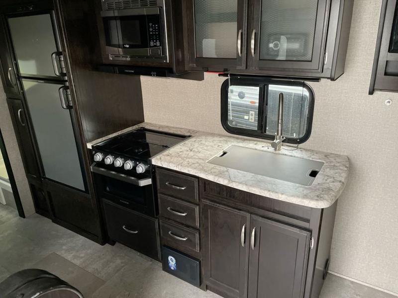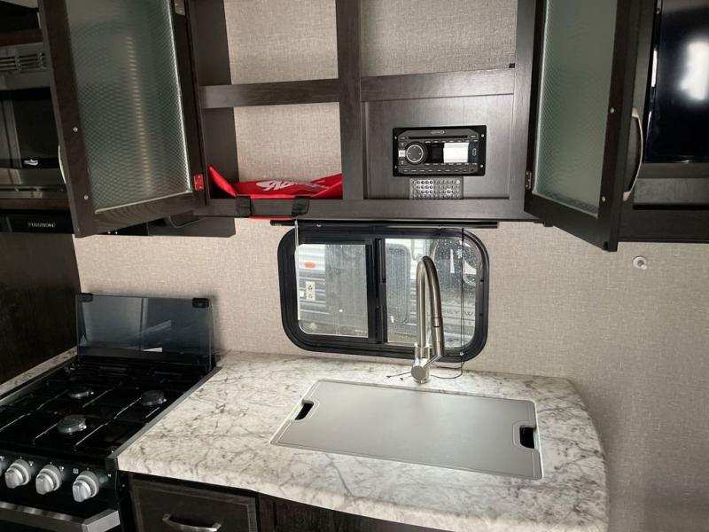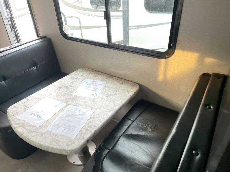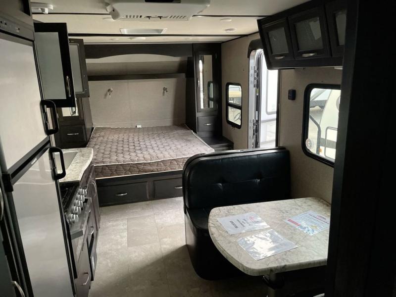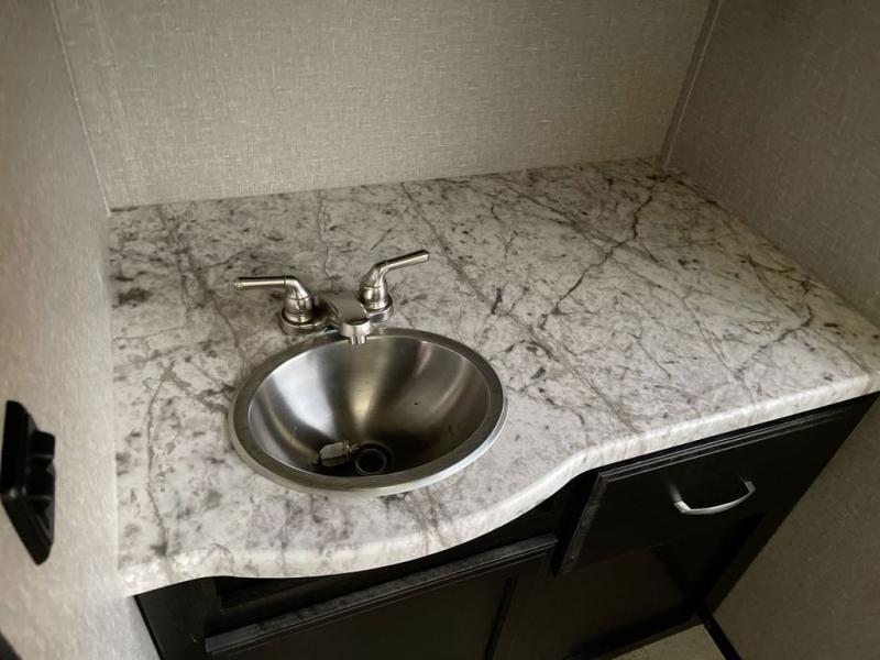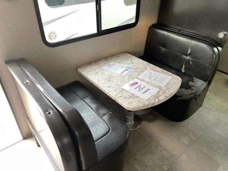 If you desire style and luxury on your camping trip then this travel trailer is what you need! It features a Murphy bed so that you can enjoy plenty of seating/moving around space during the day while still having a bed at night. Another convenient feature is the booth dinette, you can enjoy your meals at it or transform it into another sleeping space also. Don't worry about where you will keep your supplies because the pass-through storage has you covered! If you have kids, then you will love having the outdoor spray port to rinse them off before tracking dirt and sand into the travel trailer.