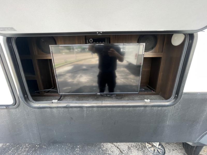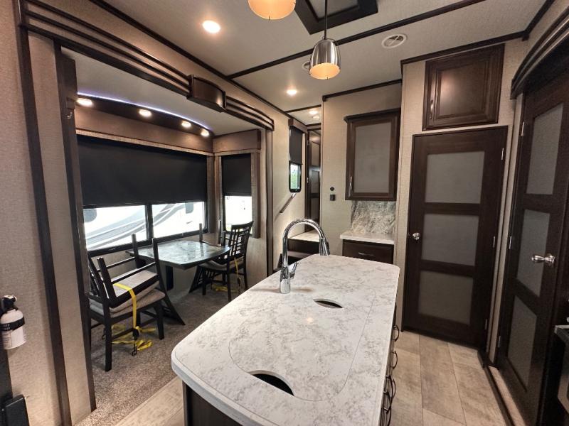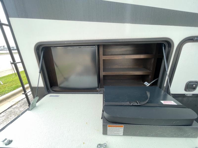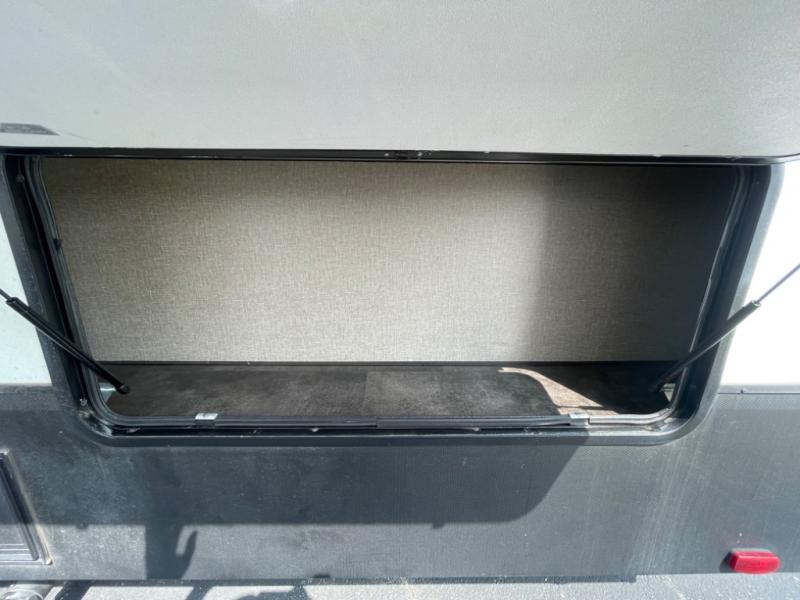 When you are ready for some off-road fun, hitch up this toy hauler fifth wheel to head to your favorite trails! This Momentum 376TH has a unique below floor garage with a bedroom above. After a busy day on the dunes, you can entertain guests in the front living area which includes a telescoping 49" LED TV with fireplace. You will find the separate kitchen area has all the amenities necessary to make and eat meals including a free standing dinette and large pantry. You can even add a washer and dryer in the second pantry if you want to keep your clothes clean the whole trip. You may choose to cook outdoors on the outside kitchen while watching the exterior LED TV. There is much more to see inside and outside this toy hauler!