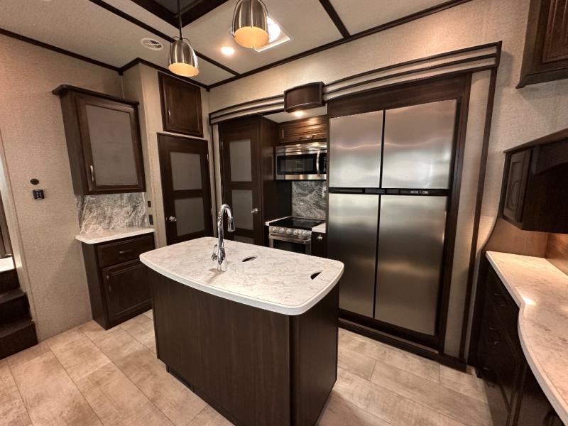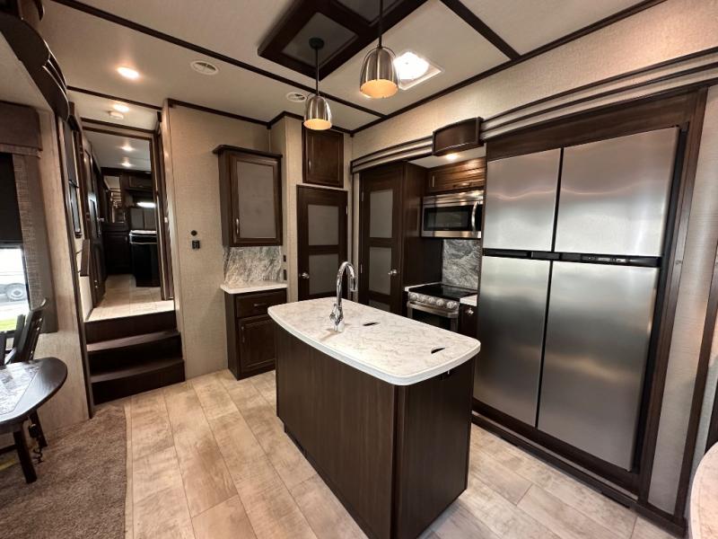 With any Momentum toy hauler fifth wheel you will enjoy extraordinary living with extreme playtime with the Weather-Tek insulation for four seasons of protection, and a fully enclosed fuel pump station to keep the fun going the whole time. The Tuff-Ply garage flooring is gas and oil resistant and includes 2,500 lb. rated flush-mount tie-downs to keep your toys secure while moving down the road. The interior includes a sofa with headrest and removable swivel table, a convection microwave, a central vacuum system with tools and a dust pan, and a satellite/solar roof access channel to mention a few highlights. Any Grand Design Momentum allows you to keep your active lifestyle no matter where you decide to stay!