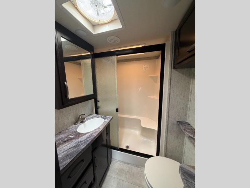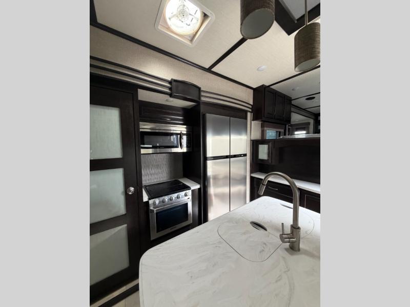With any Momentum toy hauler fifth wheel you will enjoy extraordinary living with extreme playtime with the Weather-Tek insulation for four seasons of protection, and a fully enclosed fuel pump station to keep the fun going the whole time. The Tuff-Ply garage flooring is gas and oil resistant and includes 2,500 lb. rated flush-mount tie-downs to keep your toys secure while moving down the road. The interior includes a sofa with headrest and removable swivel table, a convection microwave, a central vacuum system with tools and a dust pan, and a satellite/solar roof access channel to mention a few highlights. Any Grand Design Momentum allows you to keep your active lifestyle no matter where you decide to stay!