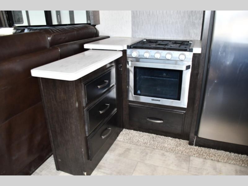 For those who live for thrill and relaxation in equal measure, the 2019 Grand Design Momentum M-Class 395M offers the perfect balance of rugged toy hauler capability and residential comfort. Designed for serious off-roaders and full-time RVers alike, this fifth wheel delivers luxury amenities, smart design, and garage space to bring all your toys along for the ride.