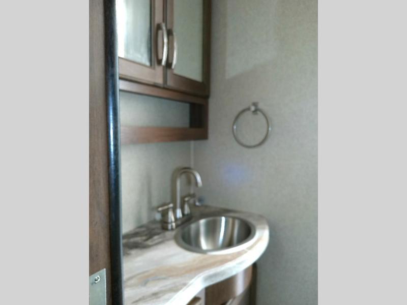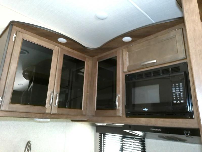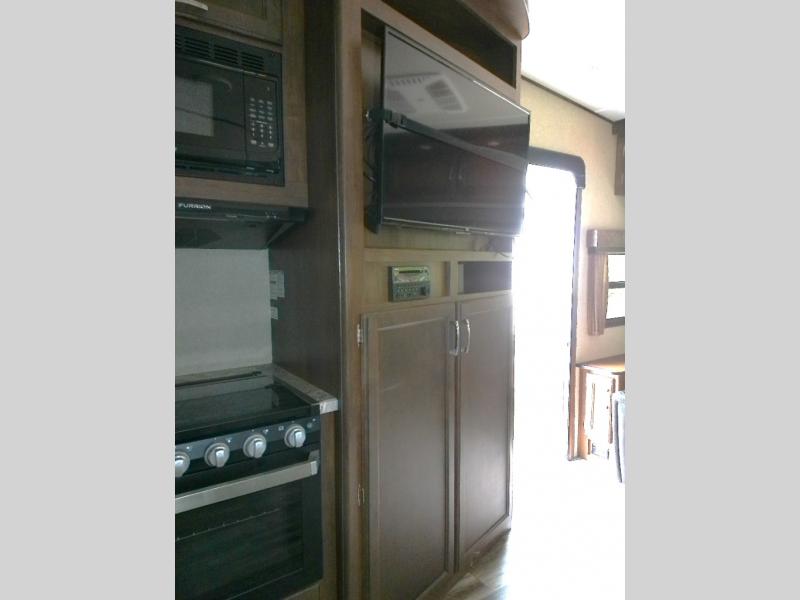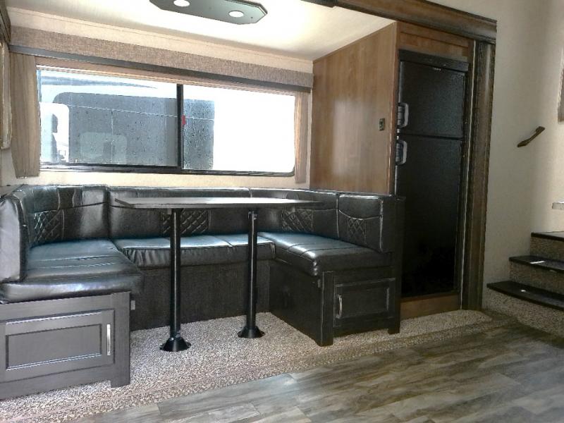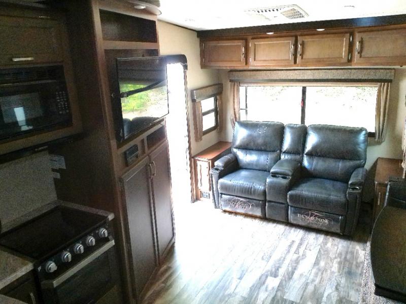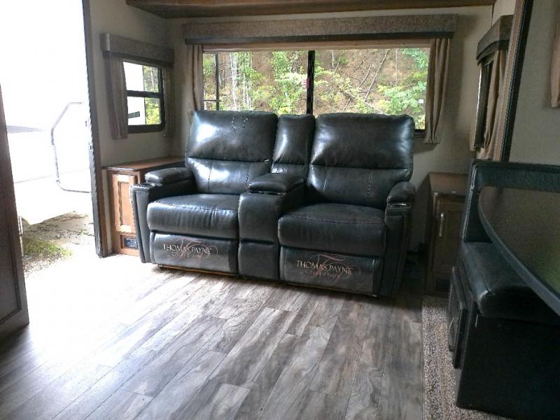 Imagine your family playing games on the 80" U-shaped dinette while you are relaxing on one of the theatre seats and watching your favorite team on the LED TV. This fifth wheel allows you to relax with inside comforts when you aren't outside enjoying the great outdoors. You will have the convenience of cooking your own meals and getting cleaned up in the full bathroom anywhere you decide to stay. There is plenty of storage throughout the interior, as well as in the exterior unobstructed pass-through compartment for those larger items. It's time to stop imaging and start living your dreams of traveling with your own accommodations to see new places!