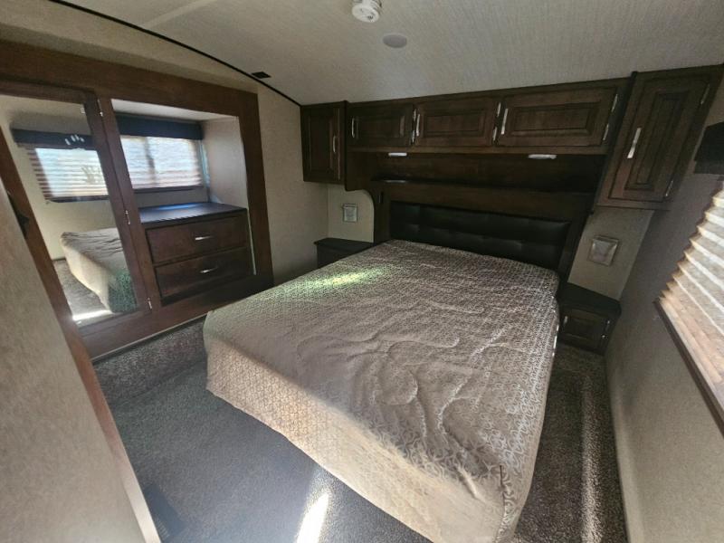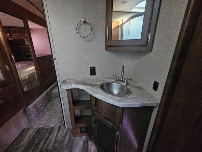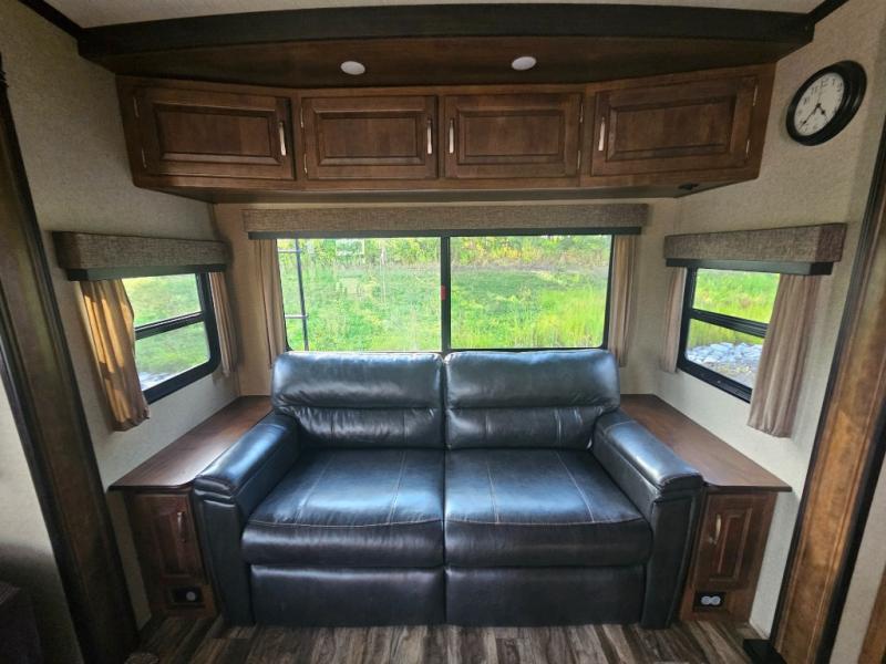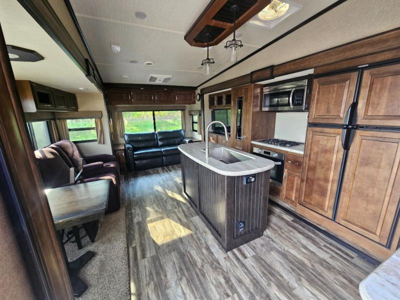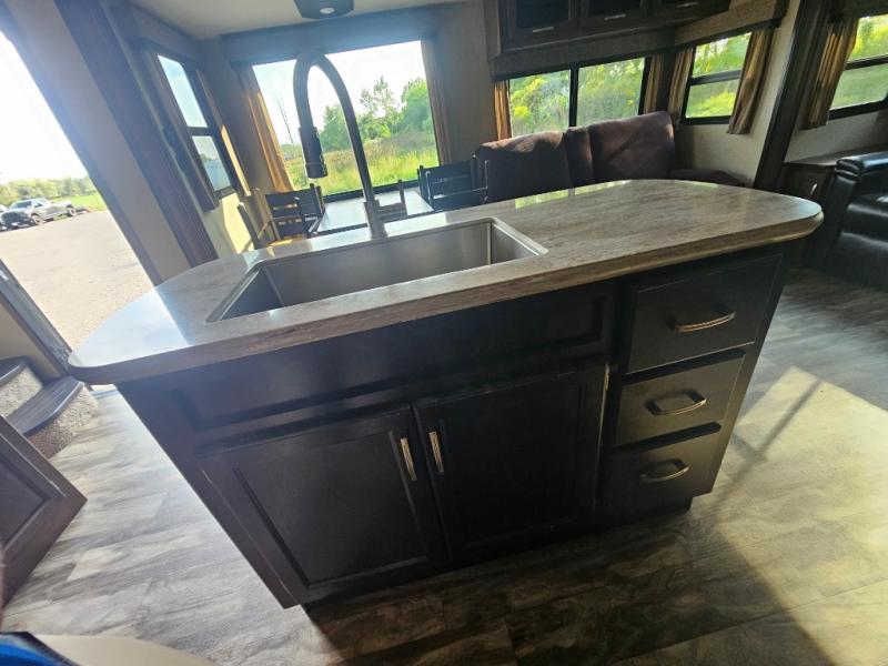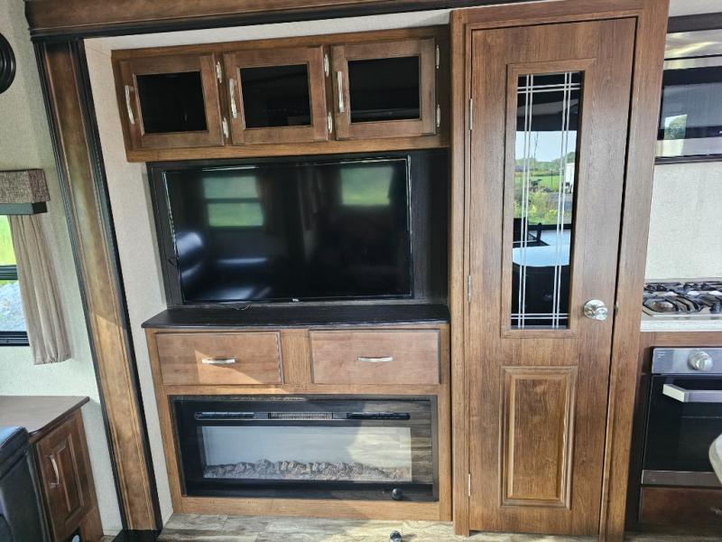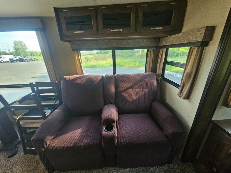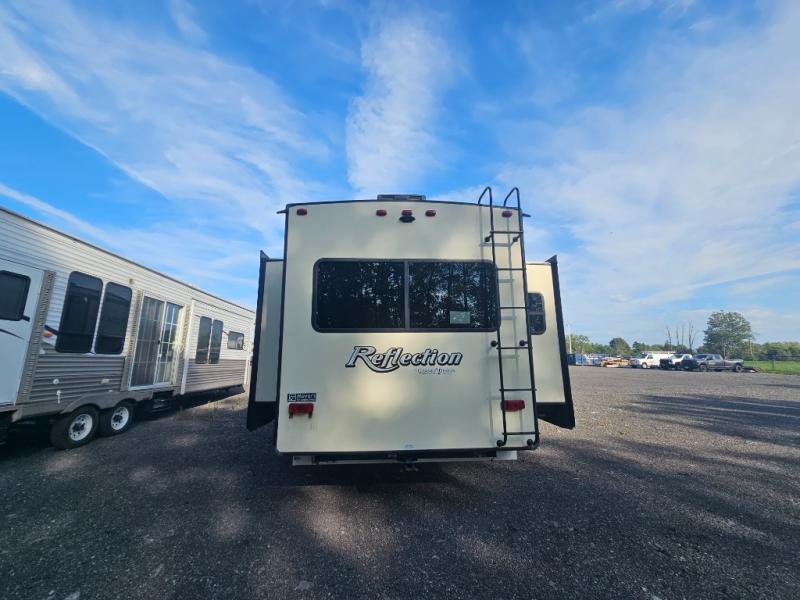 This Reflection 303RLS fifth wheel allows you to enjoy the comforts of home while moving from place to place with your spouse or smaller family. If you can imagine sitting in the rear living area on a tri-fold sofa bed or relaxing on theatre seats after making dinner and serving the food from the kitchen island, this model is for you. You are sure to love the large kitchen sink also. Even if you enjoy being outside most of the time, the weather might have you returning back inside to watch the 40" TV or cozy up to the fireplace. Don't forget about storing your camp chairs and golf clubs in the unobstructed pass-through compartment if you need a dry place for those items. This model has many more standard features to enjoy and options to choose from, come see today!