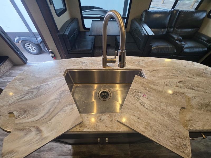 Each Reflection by Grand Design offers luxury along with providing easy towing with the aerodynamic front cap including Max Turn Radius to your favorite destinations. The Universal All-In-One docking station, LP Quick Connect, and One-Touch electric awning with LED lighting makes setting up and packing up easy for those weekenders or full-timers that like to move around. Inside, you will find the bedroom is complete with a pillowtop queen mattress, a king size wardrobe, oversized underbed storage, and much more! The Arctic 4-Seasons Protection package allows you to camp anywhere and anytime of the year. Come choose your favorite model today!