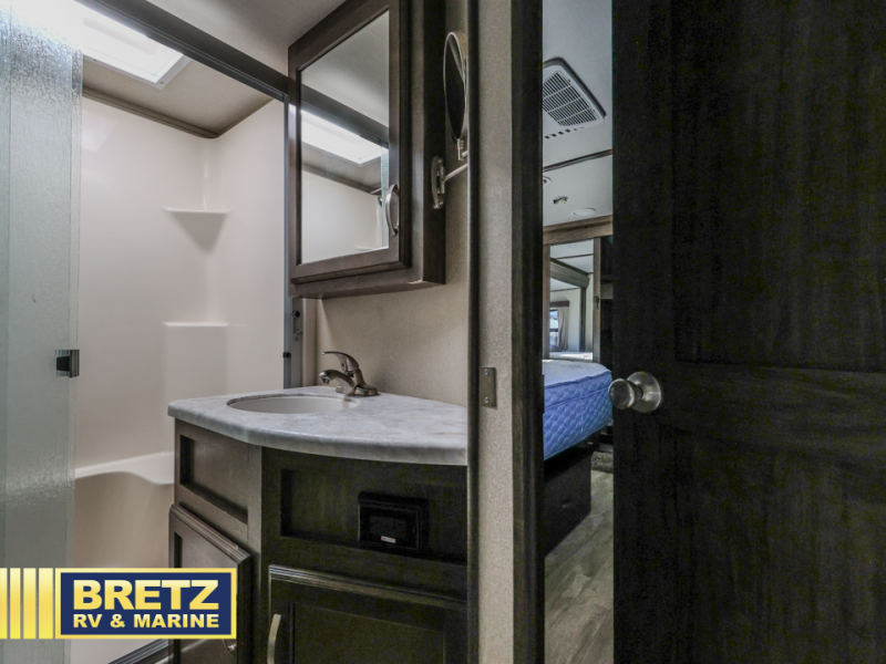 If you are on the search for a livable fifth wheel for those month long trips this Solitude might be the one! Just imagine cooking on a professional grade stainless steel cooktop and inside a built-in oven or convection microwave. The cook can prepare the meals on the kitchen island, and store leftovers in the stainless steel 18 cu. ft. four door refrigerator. When you and your spouse aren't outside, the big screen LED TV in the living area can keep you entertained while staying warm by the fireplace. There is plenty of storage throughout including for your shoes, dry goods, linens, and your wardrobe. You might even like to choose a few options such as adding a washer and dryer, a dishwasher, a king size bed, or even a pull-out kitchen outside. Come see how this Solitude will make life comfortable for years to come!