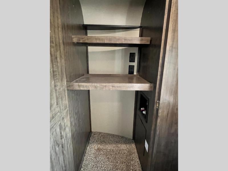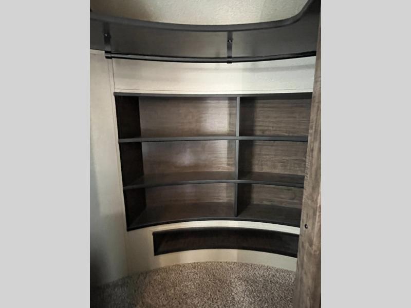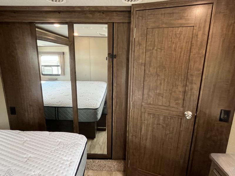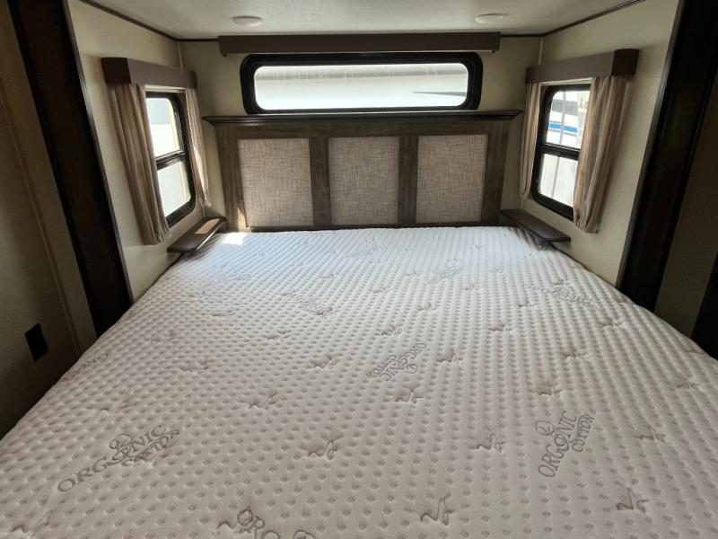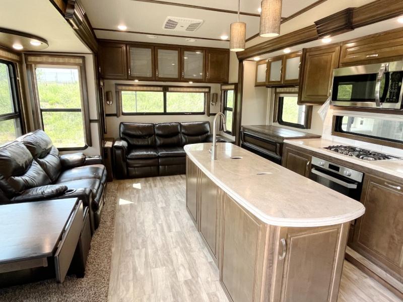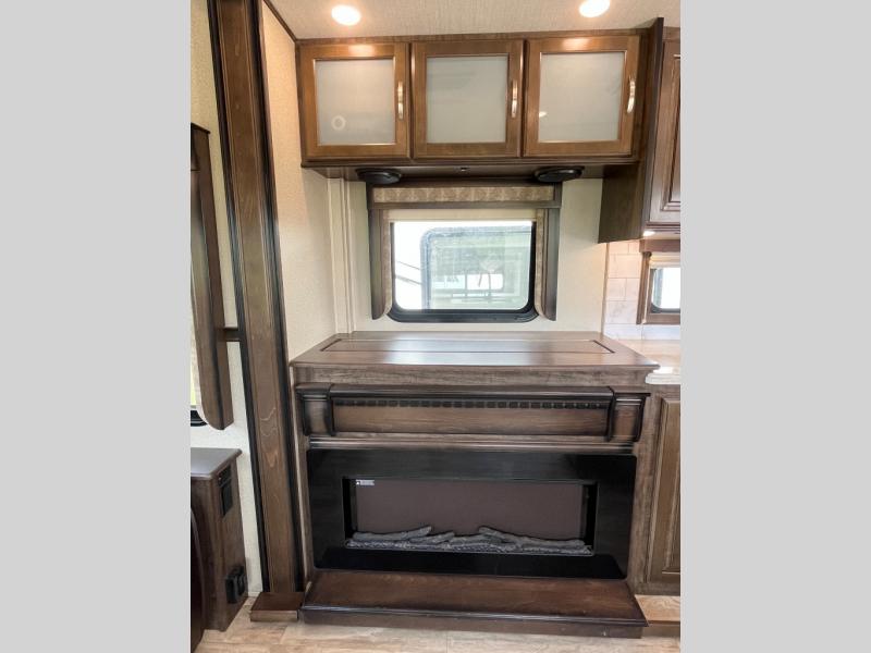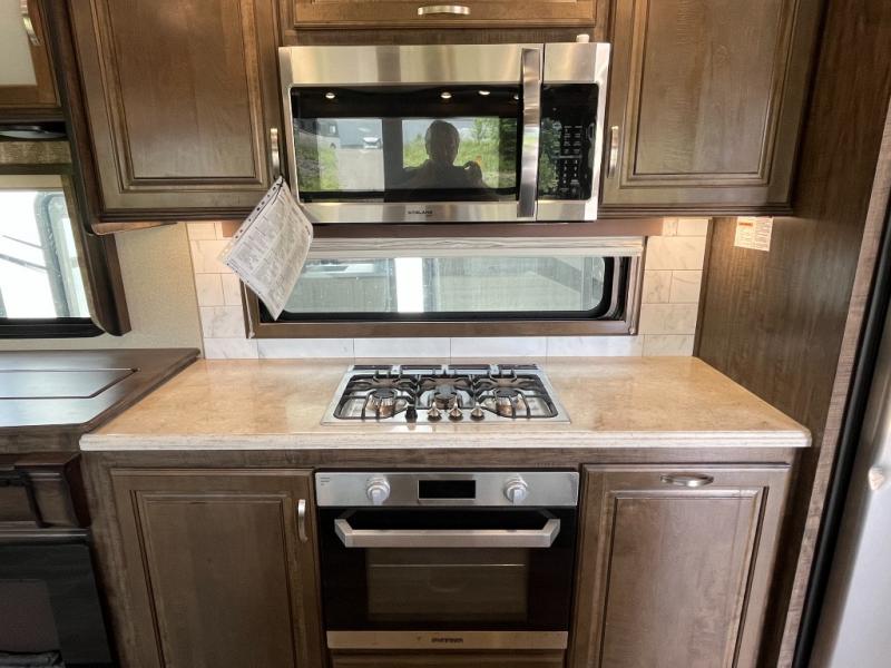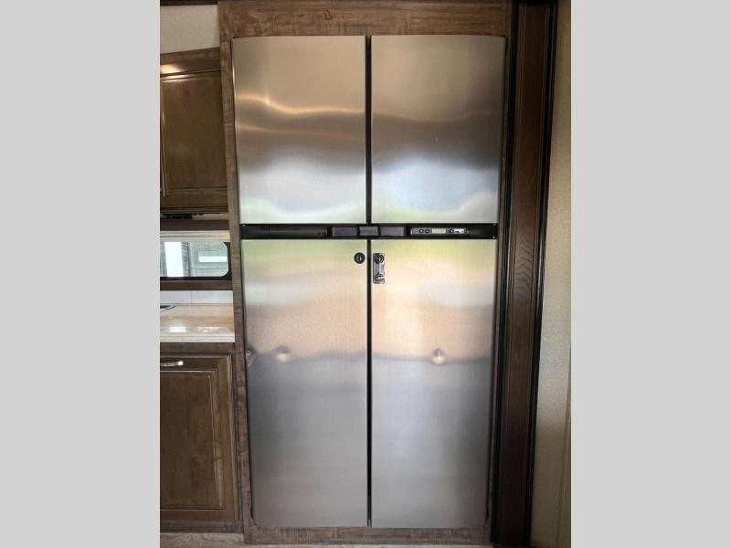 If you are on the search for a livable fifth wheel for those month long trips this Solitude might be the one! Just imagine cooking on a professional grade stainless steel cooktop and inside a built-in oven or convection microwave. The cook can prepare the meals on the kitchen island, and store leftovers in the stainless steel 18 cu. ft. four door refrigerator. When you and your spouse aren't outside, the big screen LED TV in the living area can keep you entertained while staying warm by the fireplace. There is plenty of storage throughout including for your shoes, dry goods, linens, and your wardrobe. You might even like to choose a few options such as adding a washer and dryer, a dishwasher, a king size bed, or even a pull-out kitchen outside. Come see how this Solitude will make life comfortable for years to come!