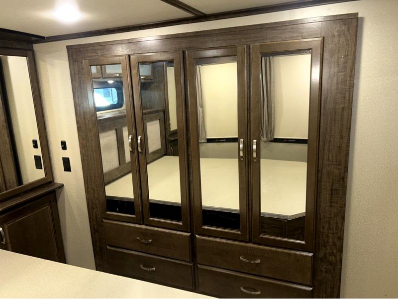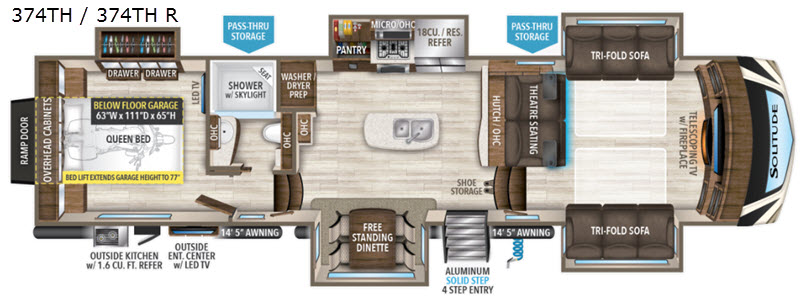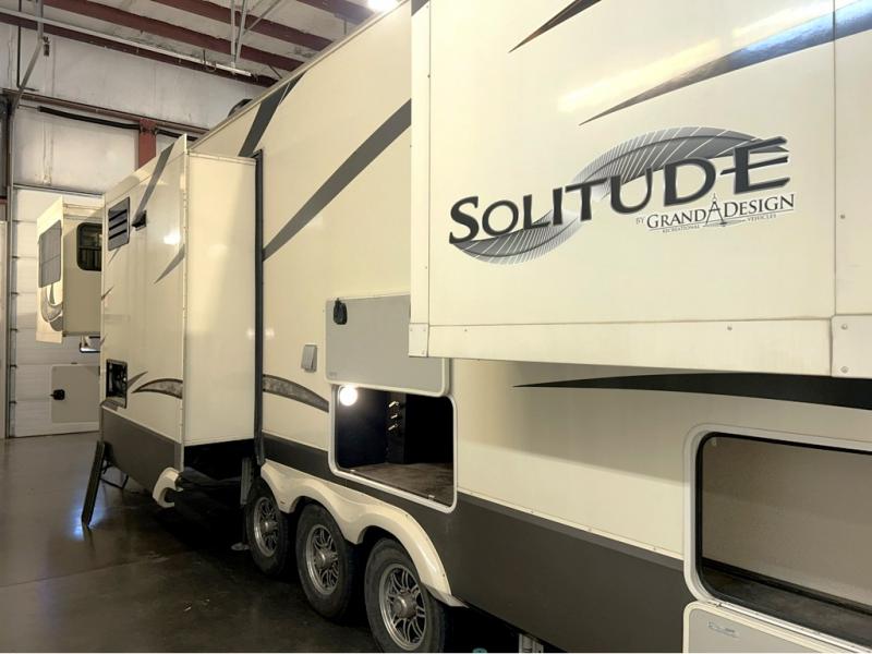 With each Solitude fifth wheel by Grand Design you will receive refined residential finishes, and affordable luxury for your extended stays or weekend get-a-ways. From the solid foundation on an exclusive superchassis and maximum insulation to the taller ceilings, taller and deeper cabinets, the power reclining theatre seating with removable swivel tables including a heat and massage function to the pet dish drawer, the Stealth AC system, and the Weather-Tek package allowing you to travel any season, you will enjoy everything about your Solitude. It's time to redefine luxury living where ever you decide to land.