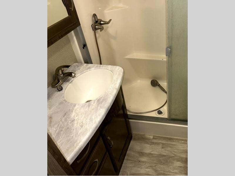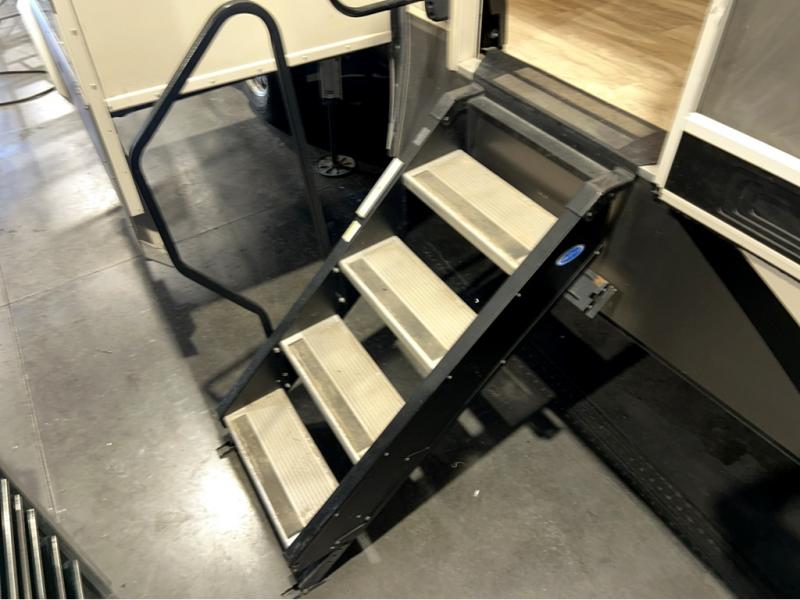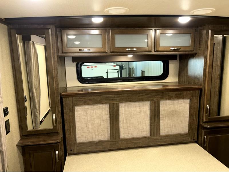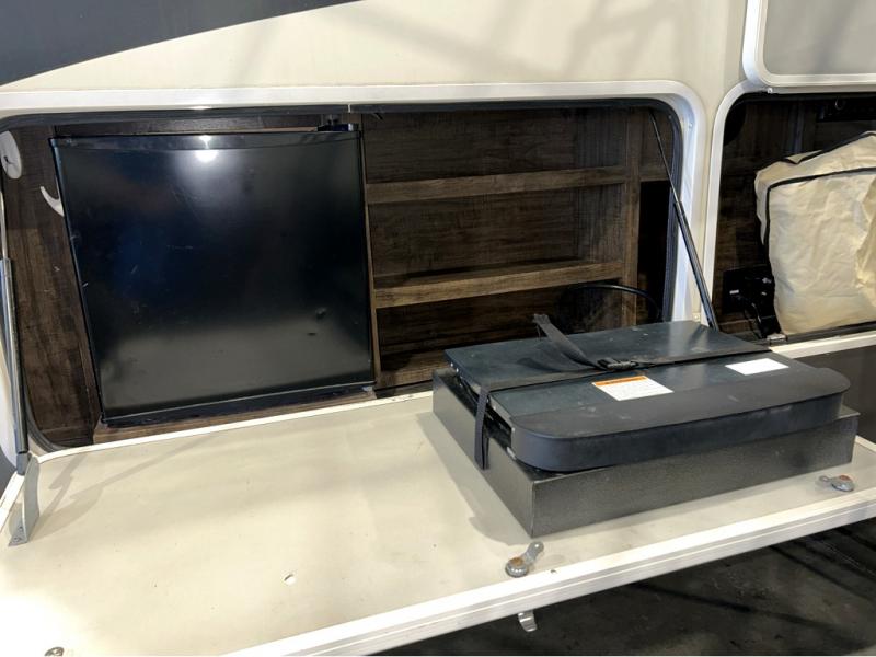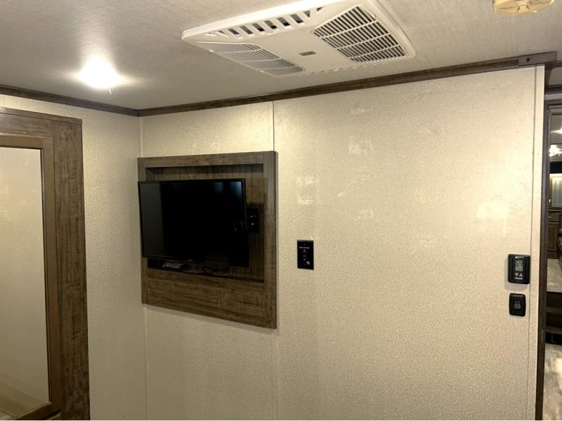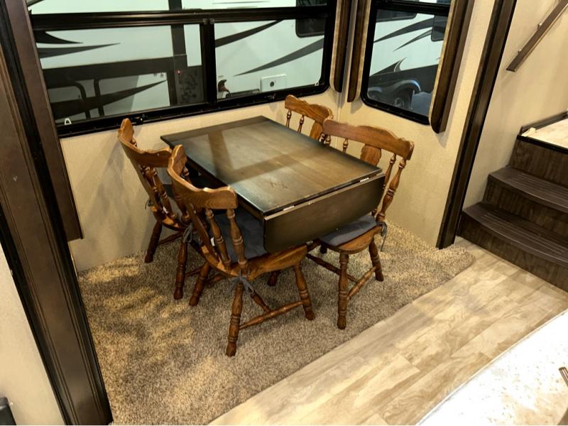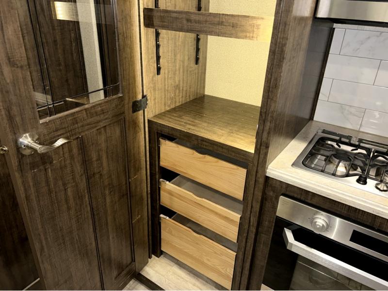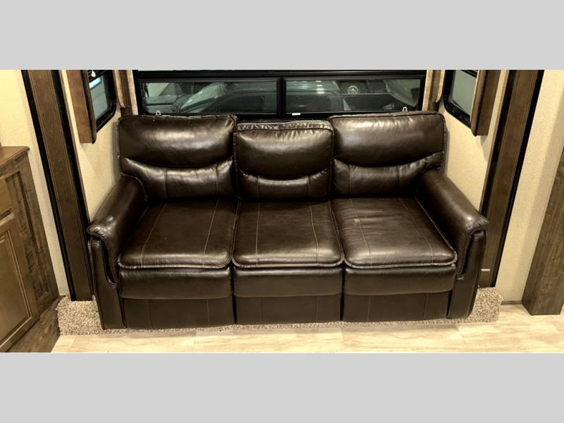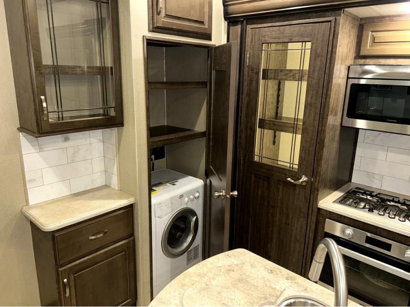 Dreaming about all the places you can take your off-road toy with you as well as your own bedding, living and kitchen area? This toy hauler fifth wheel includes a unique below floor garage underneath the rear bedroom. Once the bed is lifted the garage's height extends to 77" from 65" tall. While your toy is securely stored, you can sleep in comfort and watch TV just before bedtime. You can choose to cook inside on the professional grade stainless steel cooktop after grabbing the ingredients from the stainless steel 18 cu. ft. four door refrigerator, or outdoors on the outside kitchen while watching TV. The front living area offers plenty of seating, a fireplace, and a TV for those inside camping days. So load up your toy and all your gear to hit the dunes, mountains, or countryside.