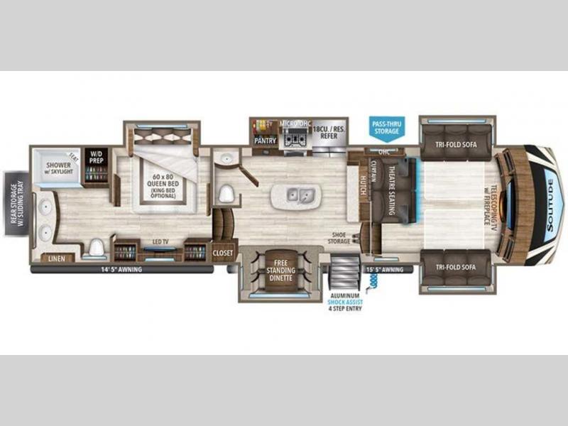 With each Solitude fifth wheel by Grand Design you will receive refined residential finishes, and affordable luxury for your extended stays or weekend get-a-ways. From the solid foundation on an exclusive superchassis and maximum insulation to the taller ceilings, taller and deeper cabinets, the power reclining theatre seating with removable swivel tables including a heat and massage function to the pet dish drawer, the Stealth AC system, and the Weather-Tek package allowing you to travel any season, you will enjoy everything about your Solitude. It's time to redefine luxury living where ever you decide to land.