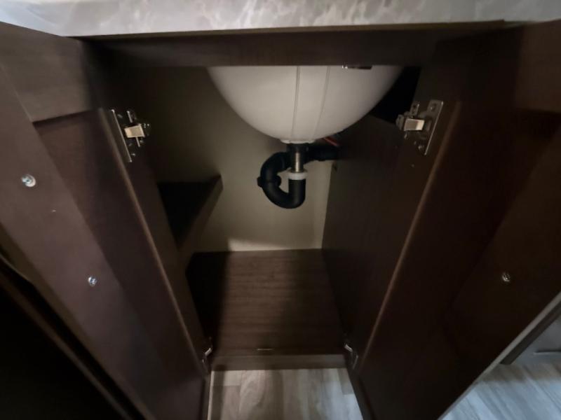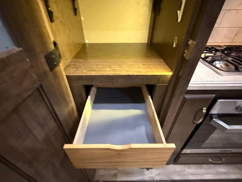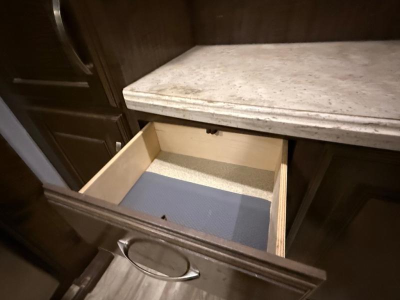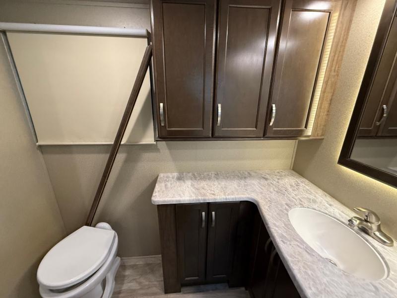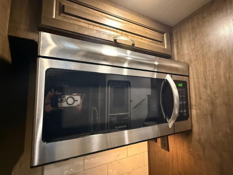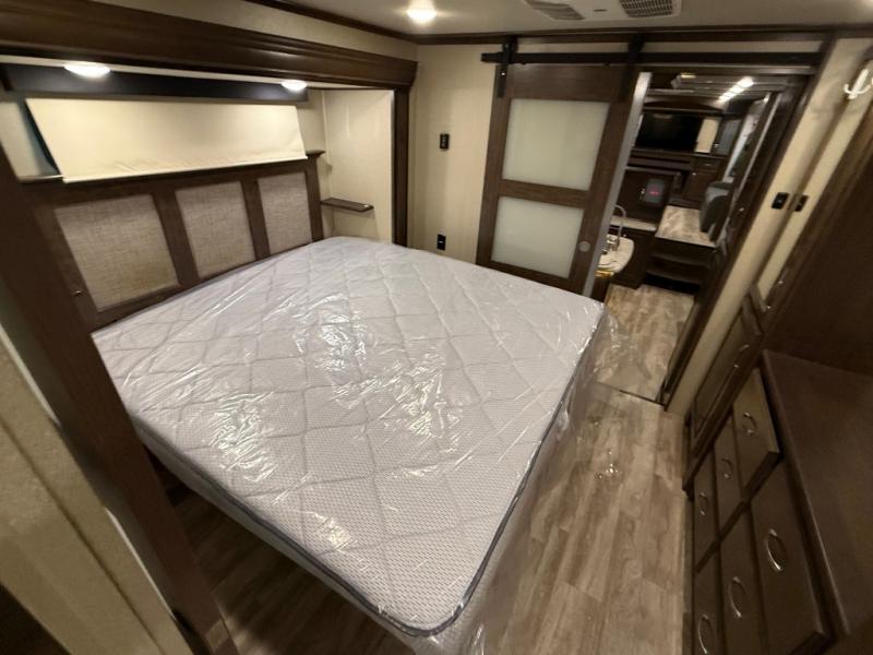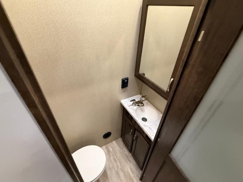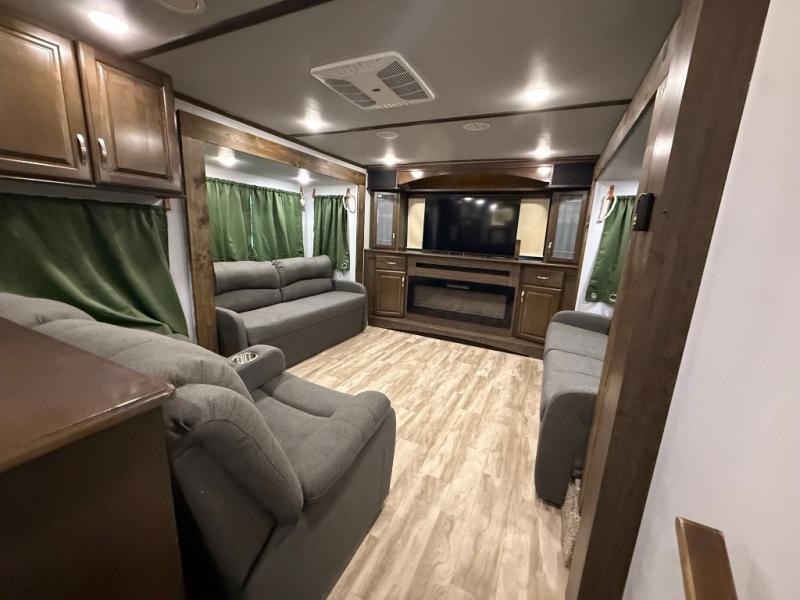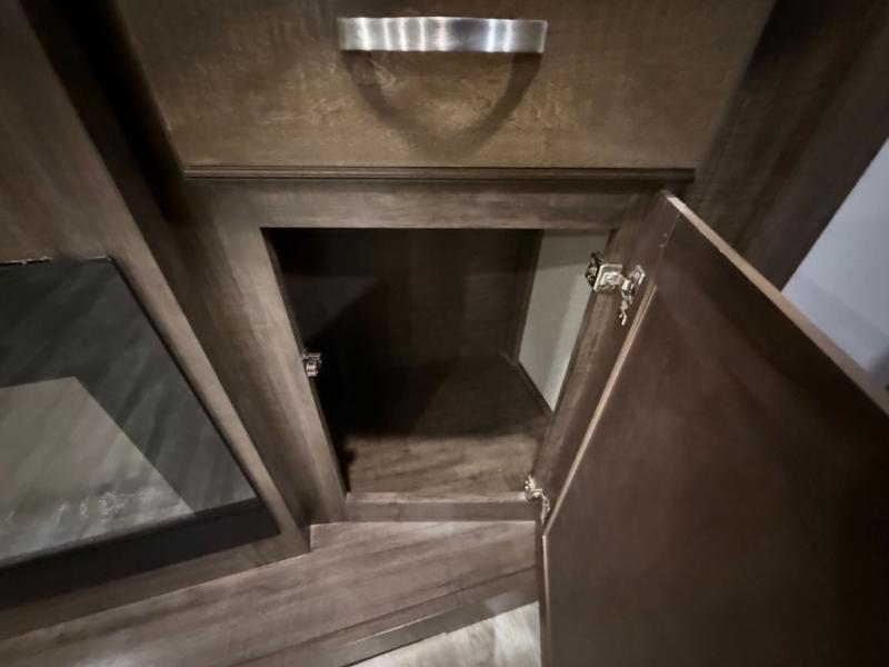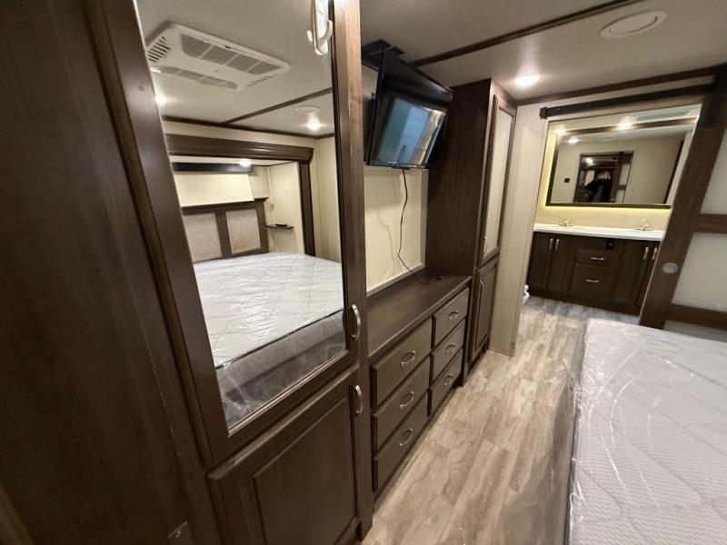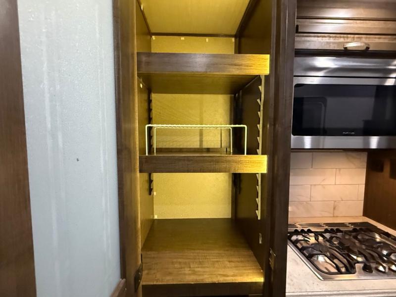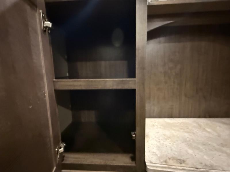 If you have been wanting to make the move to full-time RVing, imagine enough walking around space with five slide outs, extra sleeping accommodations for the grandkids in the front separate living area, and plenty of storage for all your things. You will find a dream kitchen for the cook in the family, plus the free standing dinette offers a cozy place to eat meals. The walk-through bedroom features two space savings sliding doors, and the rear master bathroom offers dual sinks, one for you and one for your spouse. You might even decide to add a few options such as a washer and dryer and/or a king size bed. Outside, there is a pass-through compartment, and rear storage with a sliding tray making getting to your gear easy. Take a look, you will be happy you did!