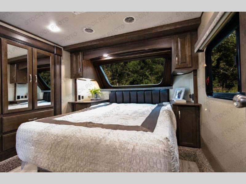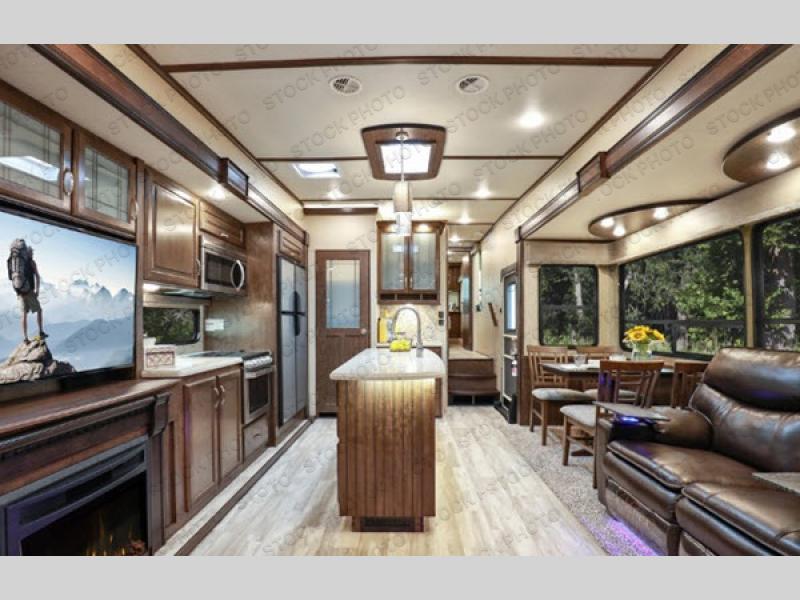 If you have been thinking about becoming a full-timer you might need to start looking at this Solitude S-Class fifth wheel. The master suite offers a queen bed or you can choose an optional king size, and storage throughout including a wardrobe slide with the bathroom sink. You will have easy access to the toilet at night as well as a second entry for your guests in the hallway. Just imagine cooking your favorite meals with the professional grade stainless steel cooktop and convection microwave, storing dry goods and snacks in the large pantry and displaying your family pictures on the hutch. There is even more to love about the kitchen! You can enjoy popcorn while reclining in a theater seat or laying on the tri-fold sofa all while staying warm from the fireplace. You even have options to choose from such as adding a residential refrigerator to make this the perfect home on wheels. Take a look!