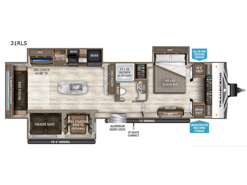 Grand Design Transcend travel trailer 31RLS highlights: