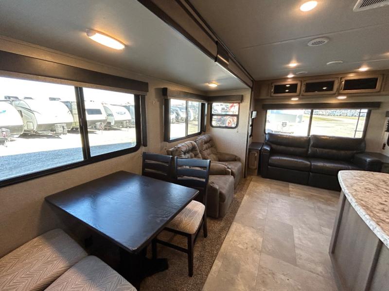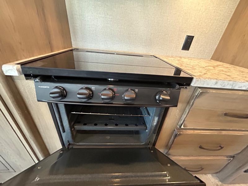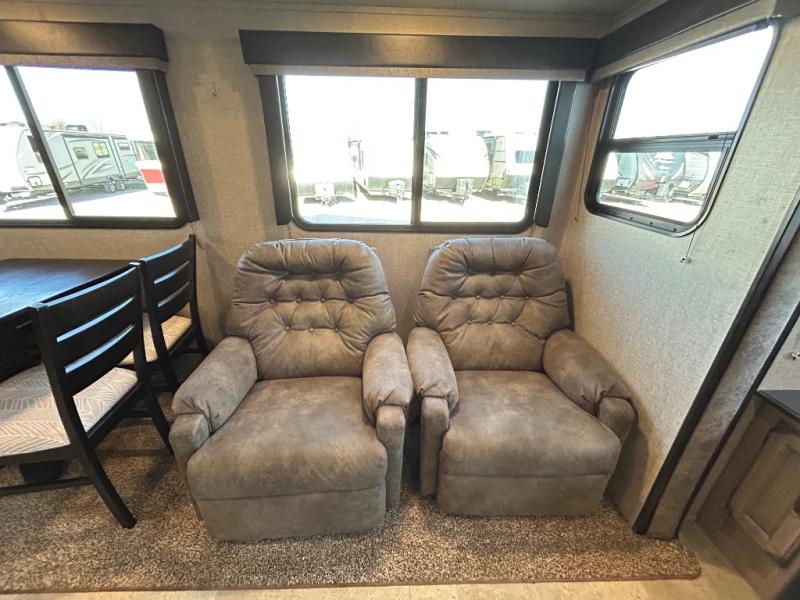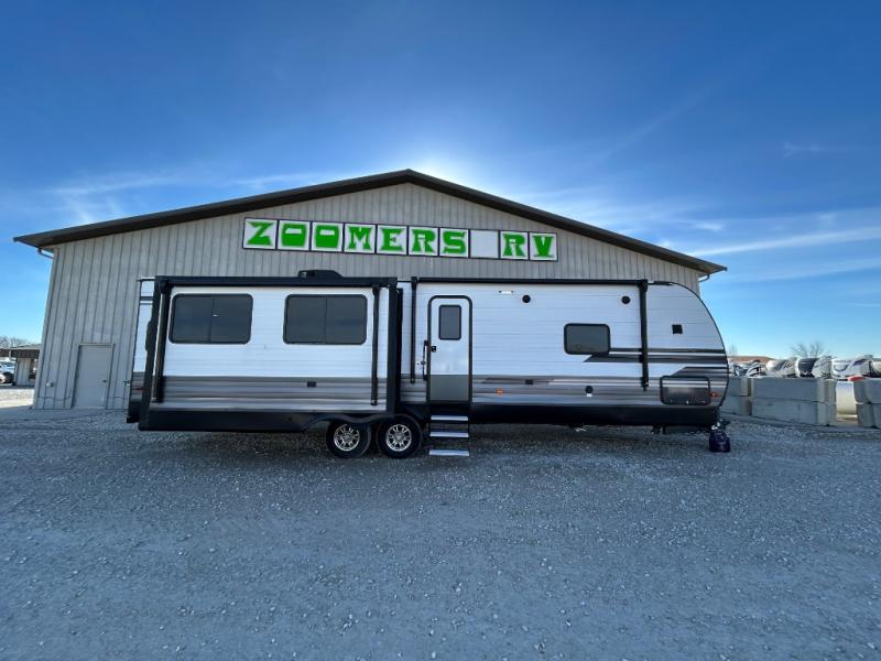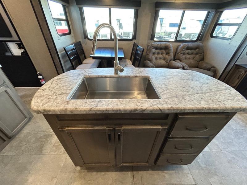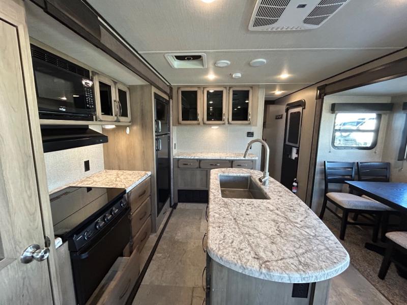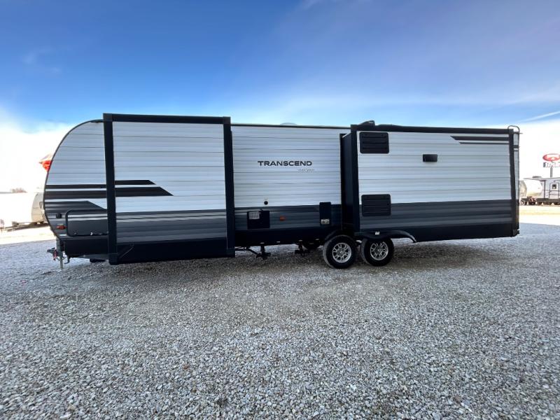 Have you been thinking about getting an RV but haven't decided which type? Do you want to have all the conveniences of home and enough space to move around? This Transcend travel trailer offers just that with its three slides, a kitchen island, and a large private bedroom so that space is no issue. The rear living area includes a tri-fold sofa and theatre seats, plus a 40" LED HDTV. The cook will love the kitchen island for preparing and serving food, as well as washing dishes, and don't forget that there are two electric awnings that provide an outdoor living area protected from the elements.