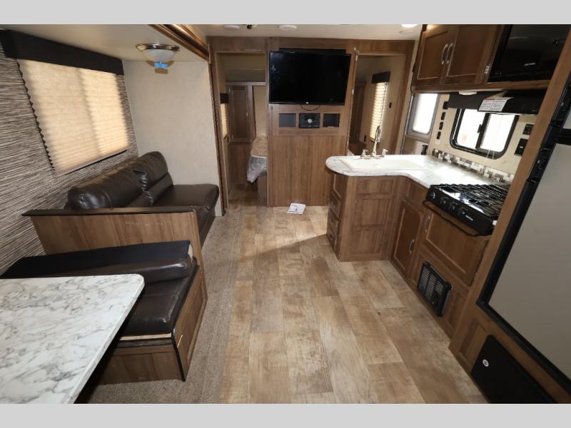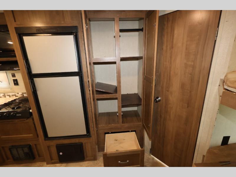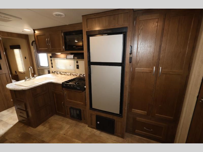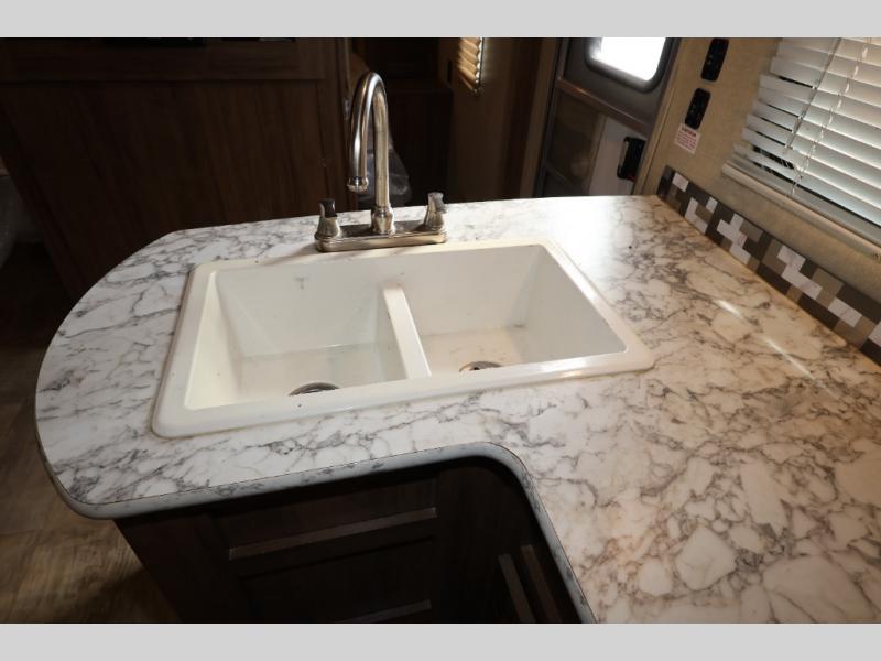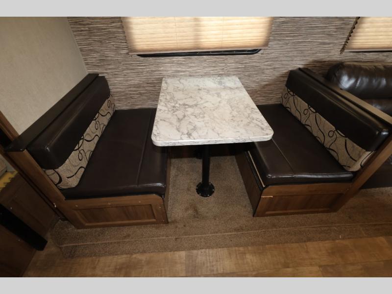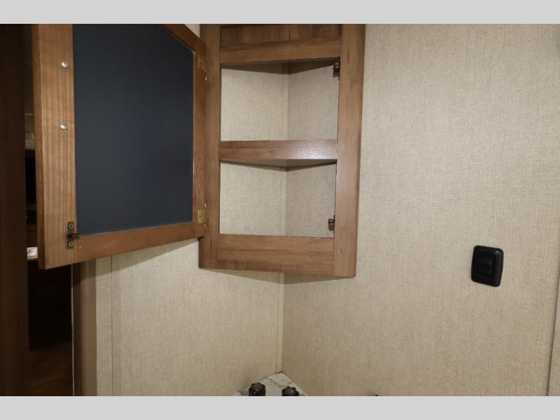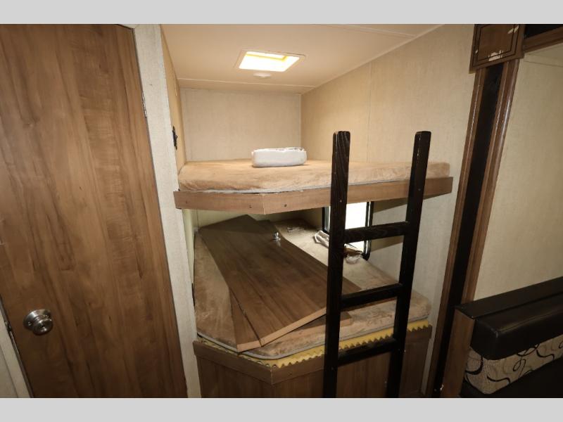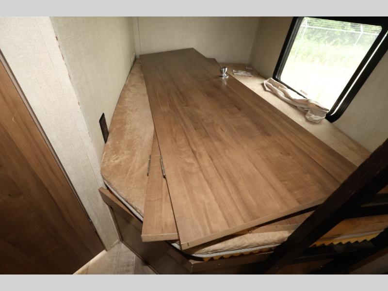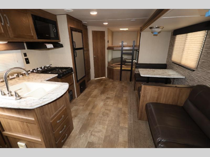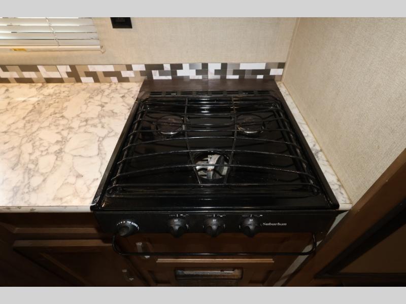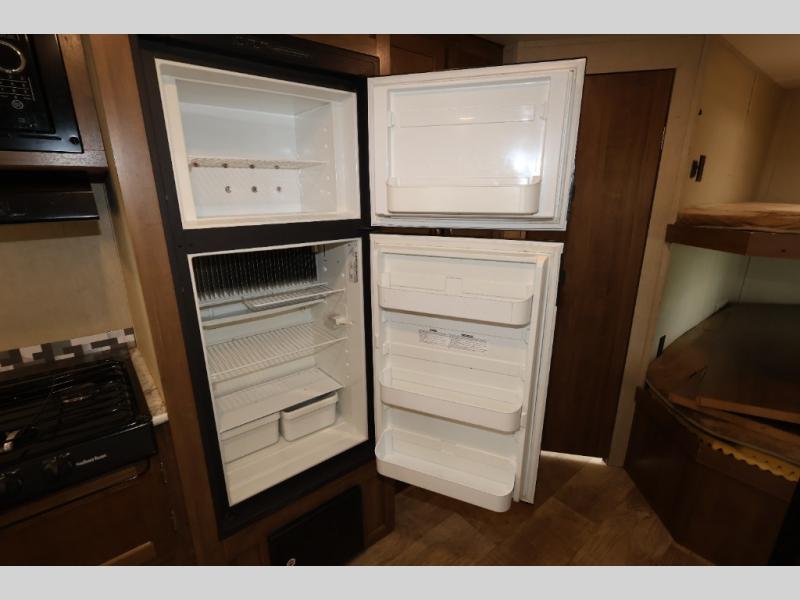 This Ameri-Lite Ultra Lite travel trailer provides everything you will need for a successful adventure with the family. Because this trailer can sleep nine people between the queen-size bed in the front private bedroom, the sofa, the booth dinette, and the rear set of bunk beds that your kiddos are sure to love, it is a perfect solution to those who travel with larger families. The addition of a single slide to this trailer is what gives the living area an extra bit of space for everyone to gather, and you won't have to miss out on the fun while cooking dinner on the 3-burner range top because the kitchen is a part of the open-concept living area.