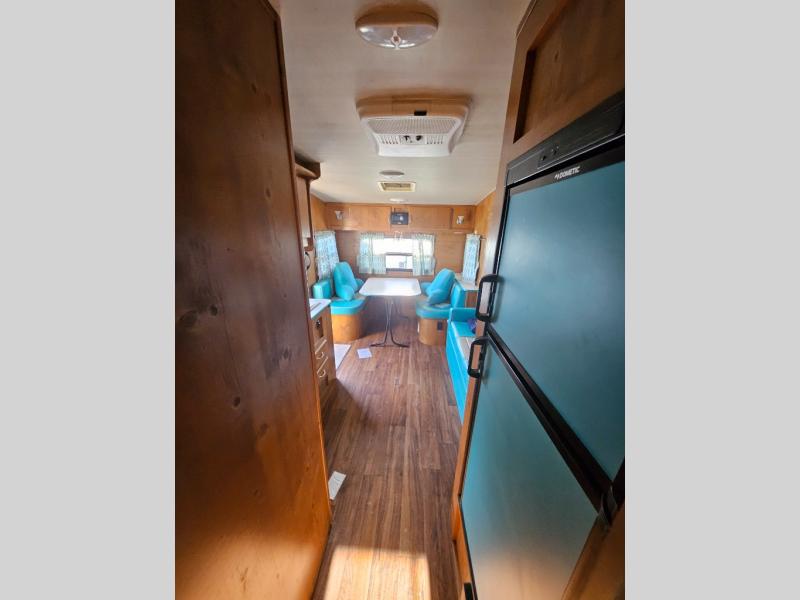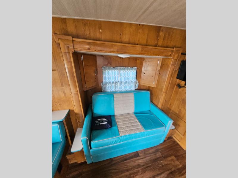 What I liked most: I like the vintage style, the red vinyl, and the knotty pine interior. I chose this model because of access to the bed on both sides, the dinette surrounded by windows, and a deep shower pan that won't leak on the floor when you bump the curtain. I also like that the toilet is not in the shower. My husband wanted 2 axels. We have the trailer 2 months and have camped 4 times. We're on a huge learning curve, but everything has worked perfectly. Our dealer, Big Country RV, Redmond, Oregon, checked everything out and gave us a walk through that was very helpful.