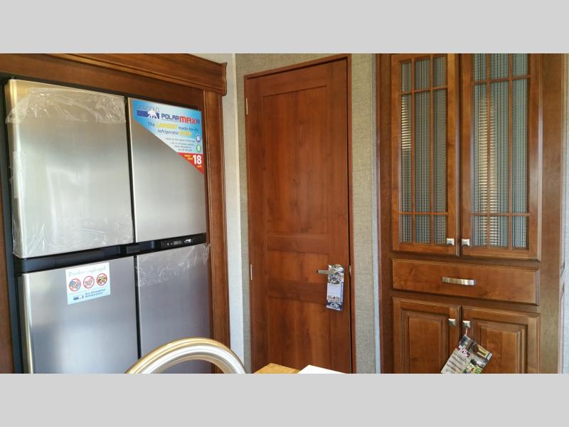 What I liked most: The controls are inside the cabinets, this is a clean setup. The kitchen/main living area has tons of storage for everything. The bedroom has a big wardrobe closet with mirrors for getting ready.