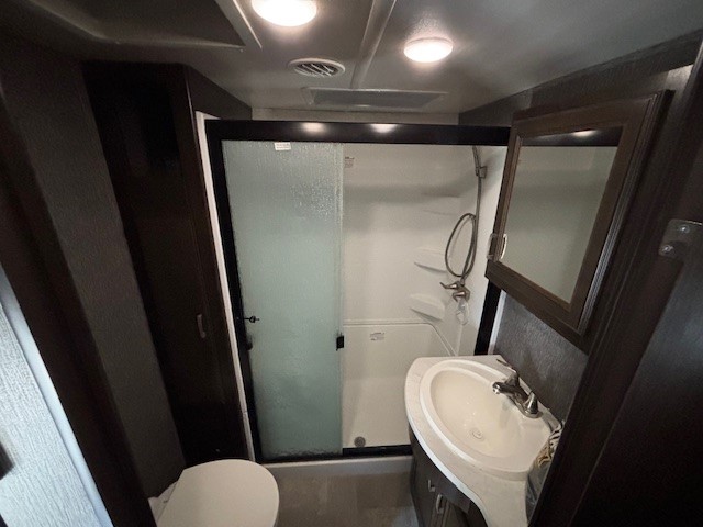 Increase your expectations for RV travel by indulging in an Elkridge fifth wheel. From the solidly built construction base with its welded aircraft-quality aluminum structure and one-piece walkable EPDM rubber roof, to the elegant exterior additions like the aerodynamic fiberglass front cap and deluxe power awning with LED lights, the Elkridge exudes its fine craftsmanship throughout every aspect of its design. The ceiling fan is a helpful feature for the warmer summer months because it will keep your guests refreshed with the cool breeze that it brings, and you will find many uses for the exterior shower with hot and cold water as you play outdoors or cook out at the campfire.