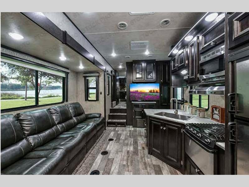 From its two slides to its two entry doors, this Fuel toy hauler is just too much to handle! You will love the fact that this model comes with a 13' separate garage making it easy to separate your toys from your living space, and when the toys have been removed, the garage easily turns into an additional hang out spot with an electric bunk, opposing sofas, and an overhead loft. You will also enjoy the extreme comfort that comes from staying in the private master suite, and with all of the various sleeping arrangements that have been included in this unit, there is enough room to sleep nine people during every getaway.