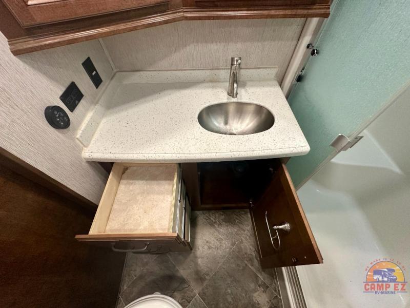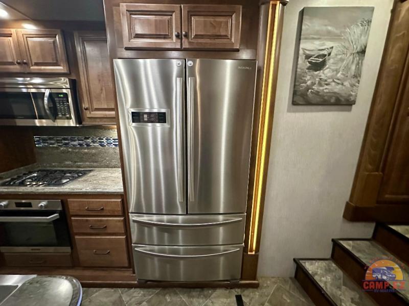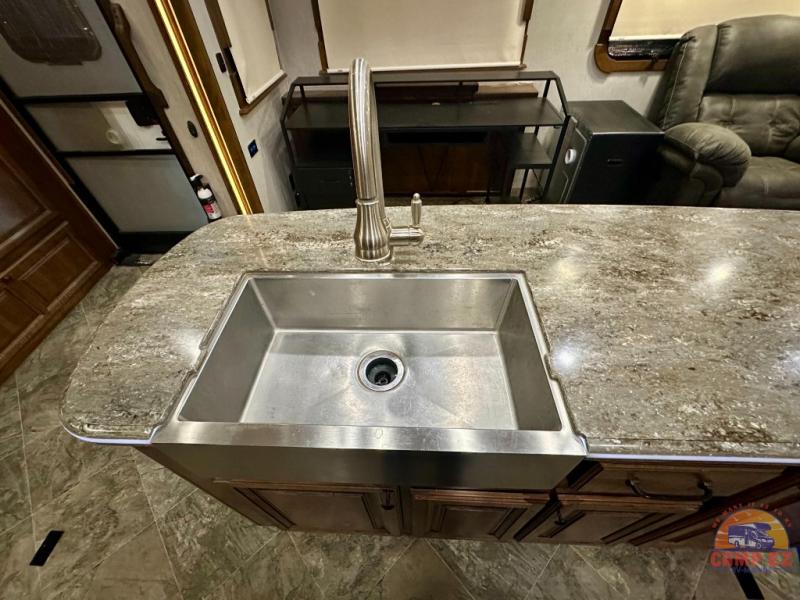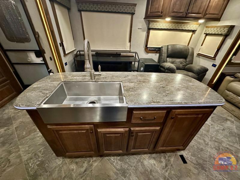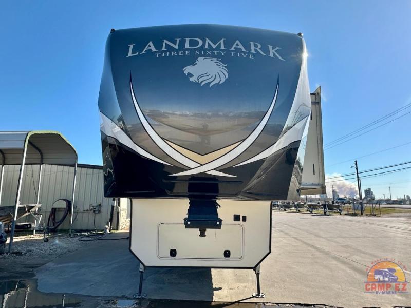 Come experience true luxury when you camp with the Landmark 365 by Heartland RV. These fifth wheels boast of comfort and convenience throughout. The sofa tables offer USB ports, so you can easily charge your electronic devices. You will also enjoy power theater seating with heat and massage - now that's luxury! The bedrooms offer adjustable reading lights, a power tilt bed, plus a TV. A few key features that you would find at home include a backlit tile backsplash, a residential refrigerator, and a farmhouse stainless single basin kitchen sink with a cutting board. There are also beautiful Maple hardwood cabinets throughout plus so much more!