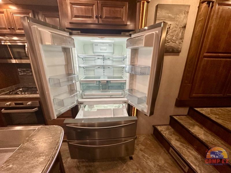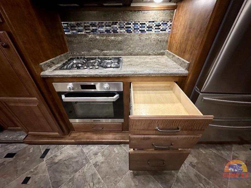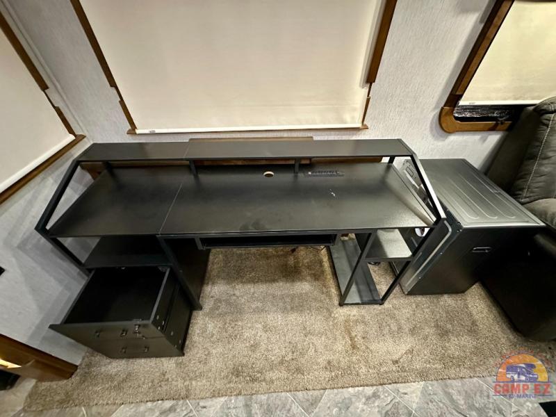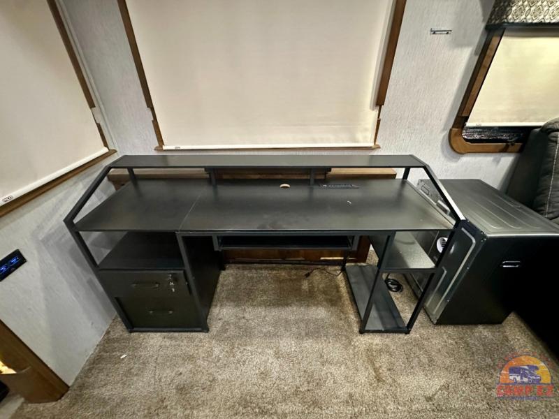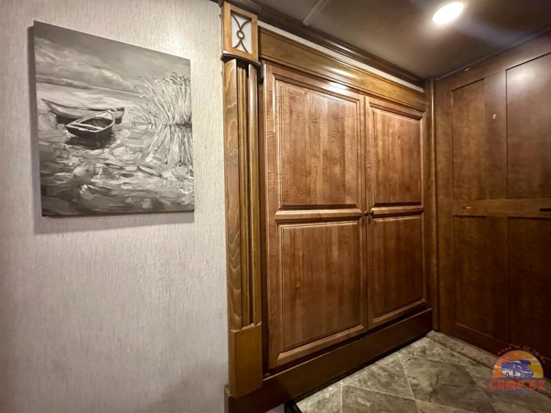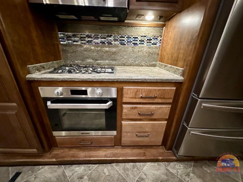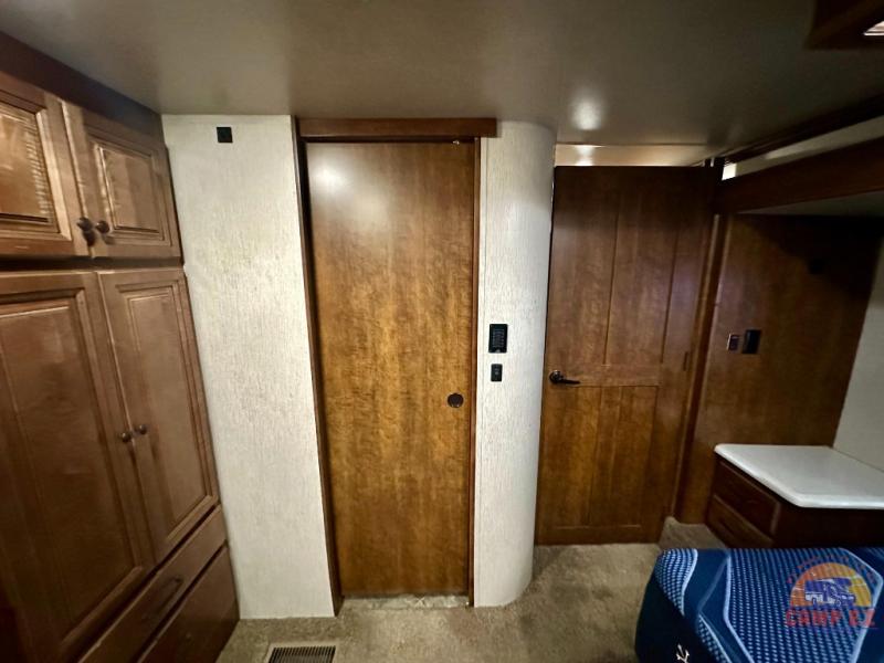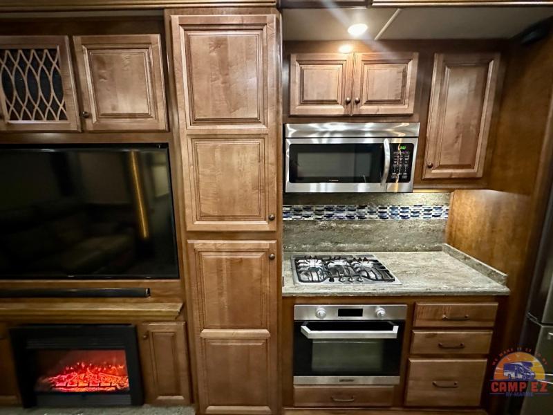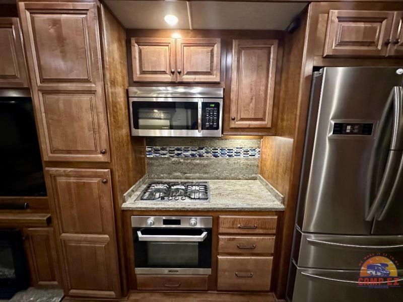 Are you ready for a luxurious get-away retreat? Well, come choose this Oshkosh Landmark 354 fifth wheel and plan to make plenty of memories with your family. Whether you enjoy relaxing in the rear living room while you watch TV, or maybe you are drawn to the kitchen with the edge lit solid surface countertops, the stainless steel oven, or the island with the large sink, there is something for everyone in this model. The private front bedroom features plenty of comforts with a tilt bed, adjustable reading lights, plenty of storage, and a large wardrobe, plus so much more!