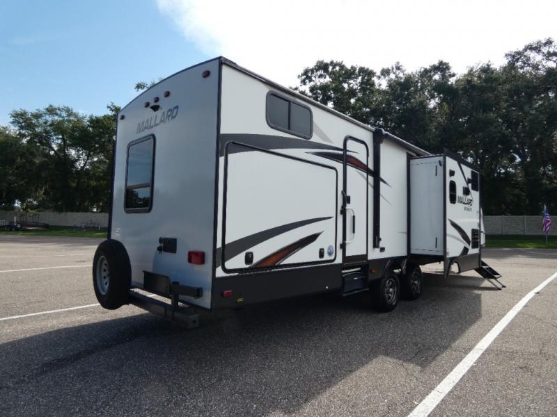 Start your journey off right with one of these Mallard Ultra Lite travel trailers by Heartland! They are a smaller, lighter package but they still pack in all of the at home features you will want on your next vacation getaway. Features like the oversized windows to let in natural lighting while allowing you to look out at your beautiful scenery anytime of day to the wide-open prep area in the kitchen and the arched ceilings measuring at almost seven feet high. These models were built to give you years of enjoyment thanks to the 6-sided aluminum construction, the fully walkable laminated roof, and the wide-trax suspension. The exterior even offers great features like the finished off pass-through storage area, a power awning with LED lights, and even outside speakers hooked up to the 12V AM/FM player for you to crank up the tunes inside or outside!