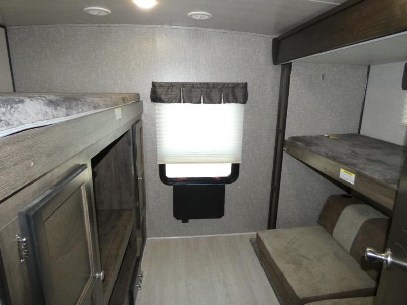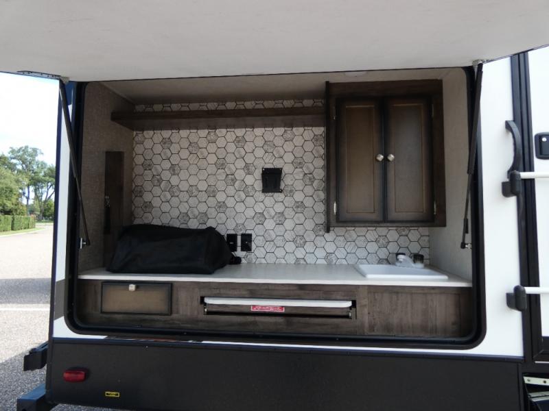 This rear private bunkhouse Mallard Ultra Lite travel trailer is sure to be a crowd pleaser! You will love all that this unit has to offer from the dual entry doors to the sofa and U-shaped dinette slide out that adds more walking around space. Whipping up your favorite meals will be a breeze in this complete kitchen and with the kitchen island you will enjoy having more room to prepare, counter and storage space. If you feel like being outdoors instead of cooped up indoors preparing a meal then simply head outside and enjoy grilling up some burgers at the exterior kitchen!