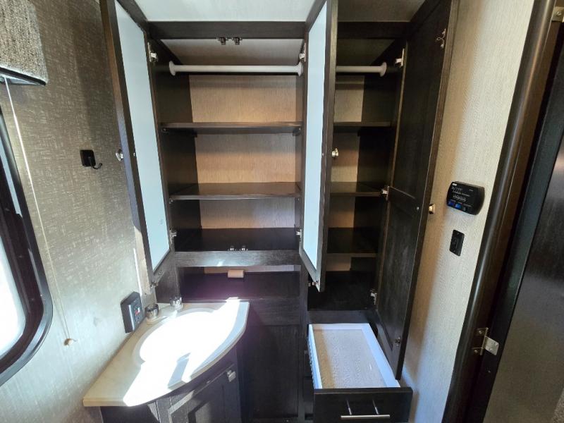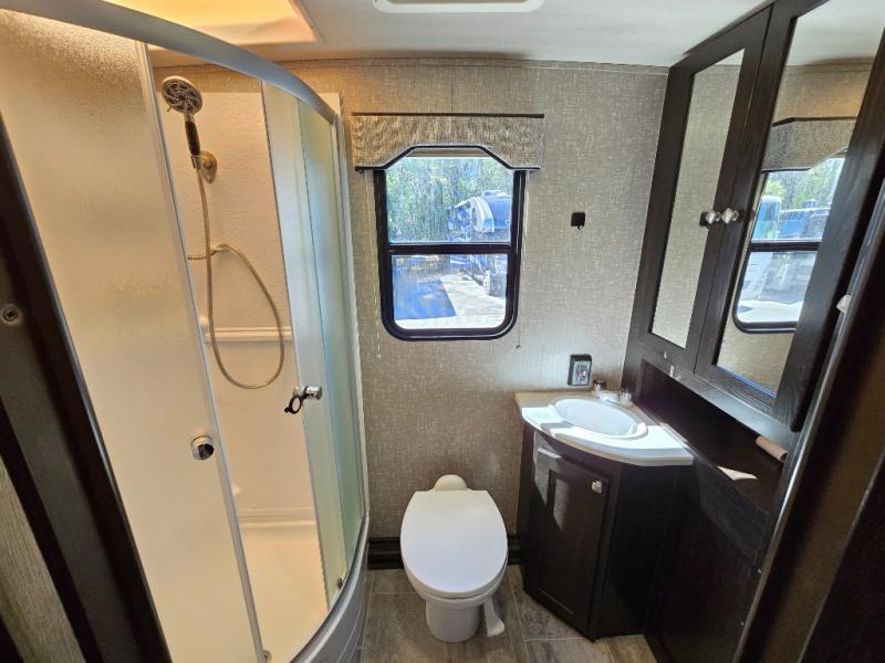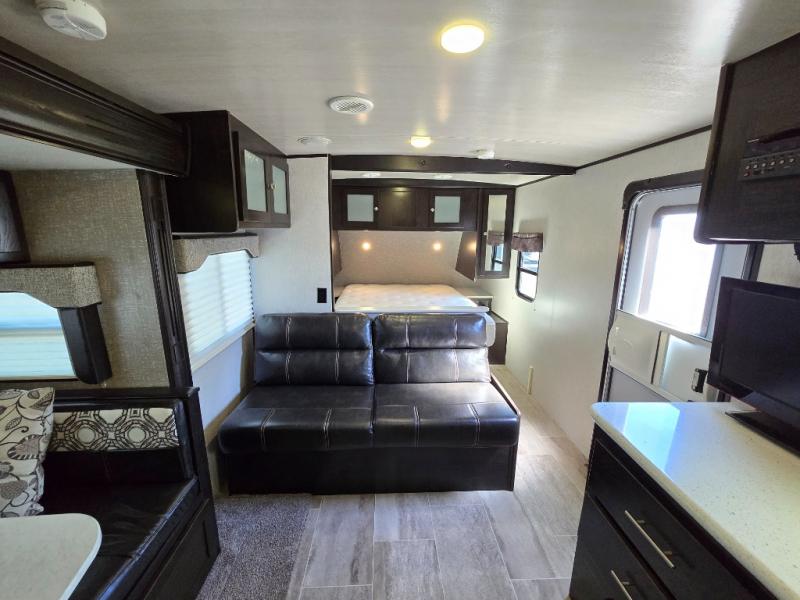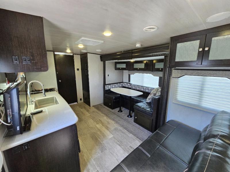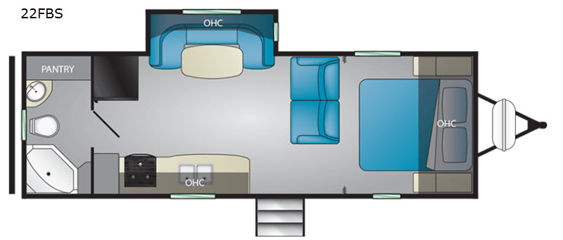 Are you ready for relaxing days and evenings filled with sitting around the campfire visiting with your family? You will want this single-slide North Trail travel trailer! This model can easily sleep four people, and after you set up camp, you can come inside and enjoy the comforts throughout from the sofa to the U-shaped dinette where you can eat your meals or play a card game or two. The rear bathroom features extra storage and a neo-angled shower. When you are ready to turn in for the night, come enjoy the front bedroom!