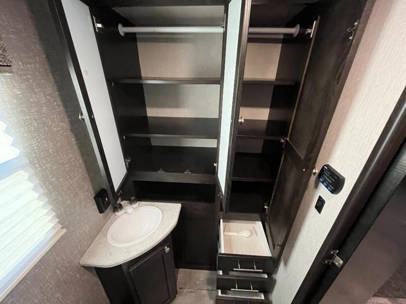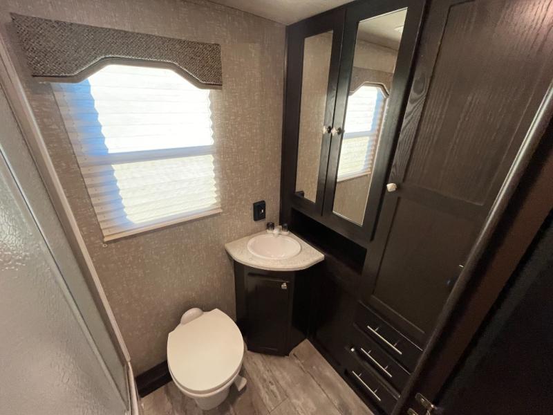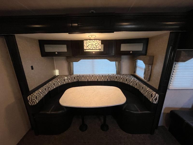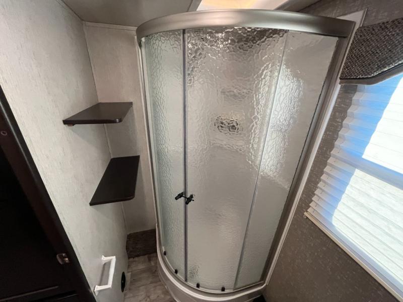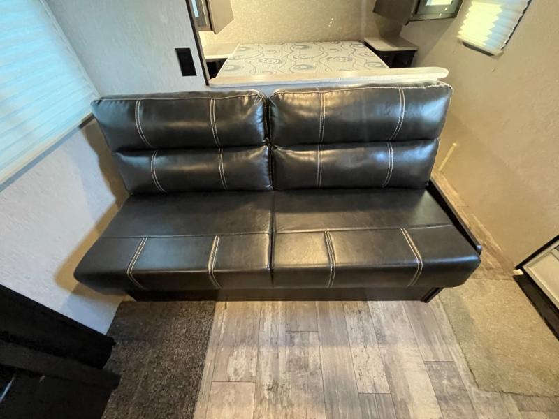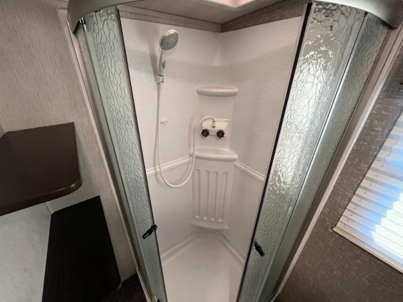 Are you ready for relaxing days and evenings filled with sitting around the campfire visiting with your family? You will want this single-slide North Trail travel trailer! This model can easily sleep four people, and after you set up camp, you can come inside and enjoy the comforts throughout from the sofa to the U-shaped dinette where you can eat your meals or play a card game or two. The rear bathroom features extra storage and a neo-angled shower. When you are ready to turn in for the night, come enjoy the front bedroom!
