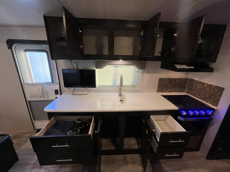 For a lightweight travel trailer that is not lacking on features, you will want a North Trail by Heartland. Along the exterior you will find a heated and enclosed underbelly which allows you to camp in all types of weather! You will also find a one-piece rubber roof, plus nitro-filled radial tires. Inside, enjoy the extra space with the curvilinear roof, LED lights, and the Beauflor flooring. The optional NT Kitchen Package includes upgraded brushed nickel hardware, a large kitchen window, a pull-out spray faucet and more. The optional Lightweight Strength Package has block foam brick insulation, HD leaf spring suspension, and Weather Guard thermal protection, plus so much more!