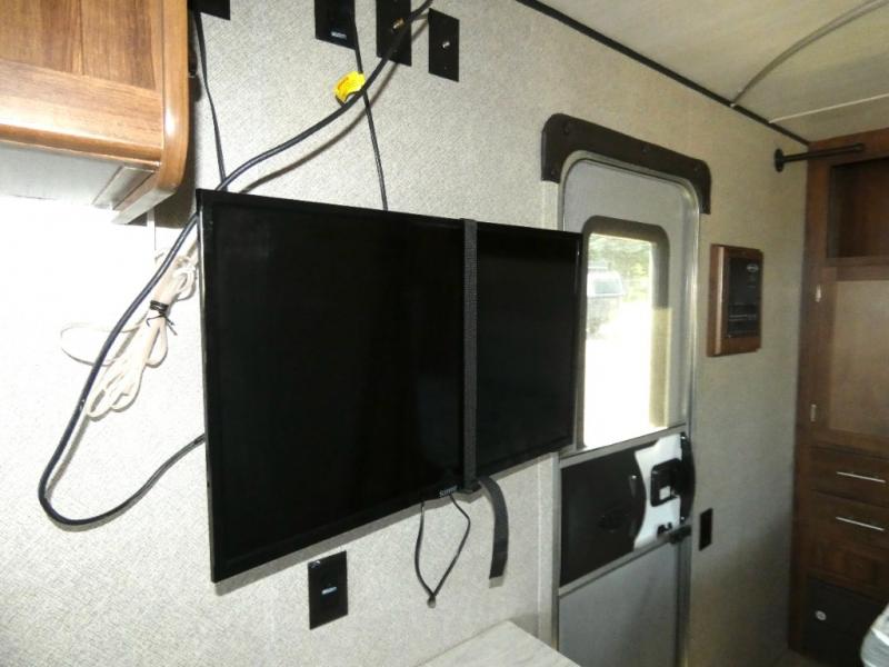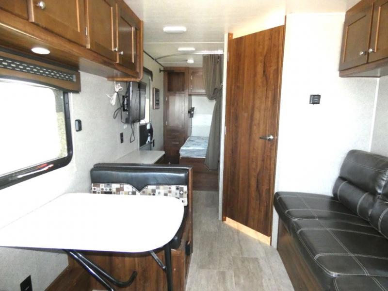 Load up your family of four, your camping gear, and head out for a long weekend with this V22 Terry Classic travel trailer by Heartland RV in tow. This model is lightweight, yet packed full of modern conveniences. The front kitchen features stainless steel appliances such as a 6 cu. ft. refrigerator and a two burner range. There is plenty of counter space which makes meal prep easy, plus you will enjoy the view out the front window as you work. When you are ready to call it a night, come enjoy the comfort of the rear queen bed where you can rest up for another day of fun! Throughout this model there are plenty of overhead cabinets where you can stow away your personal belongings, plus so much more! Inside you will enjoy LED ceiling lights with cove surround blue accent lights and in the living room there is a 32” LED TV.