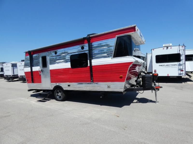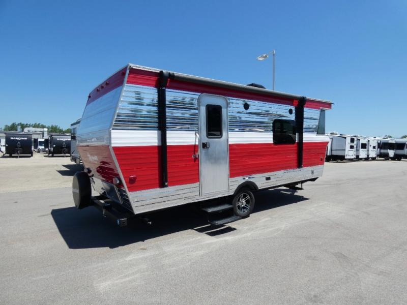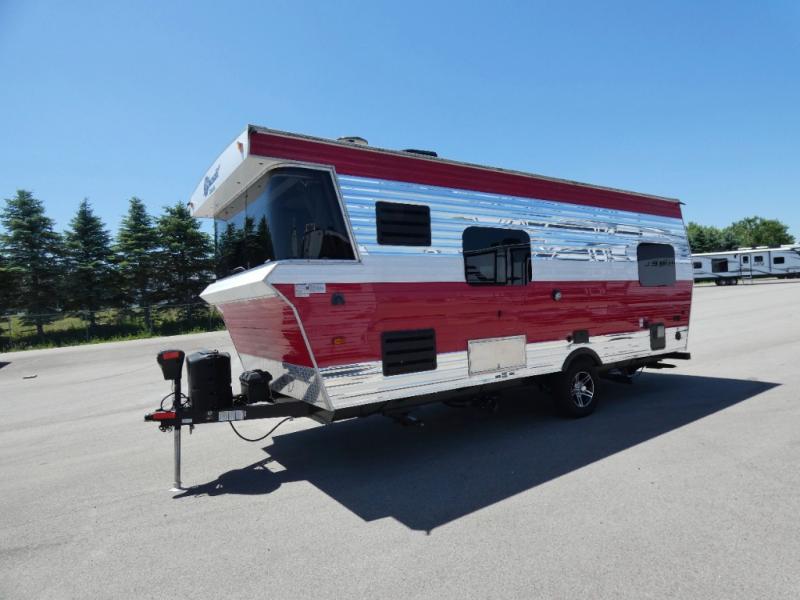 For the kid inside of you who wants to bring back your memories of camping, come choose the retro style Terry Classic by Heartland RV. These models are lightweight and can be towed with just about any vehicle. Outside you will find baggage doors with magnet stays so now it is even easier to load up your camping gear! Along the front there is a molded Lexan window which just adds to the retro appeal. Inside you will enjoy LED ceiling lights with cove surround blue accent lights and in the living room there is a 32” LED TV. Throughout the kitchen area you will find solid surface counter tops with LED lighted edges, a 6 cu. ft. refrigerator, stainless steel appliances, plus so much more!
