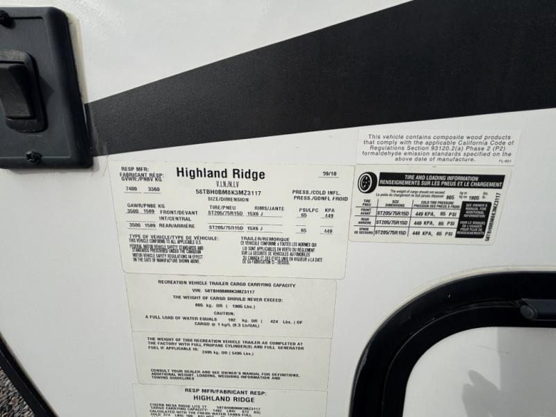 Used 2019 Highland Ridge RV Mesa Ridge Lite MR2102RB Travel Trailer