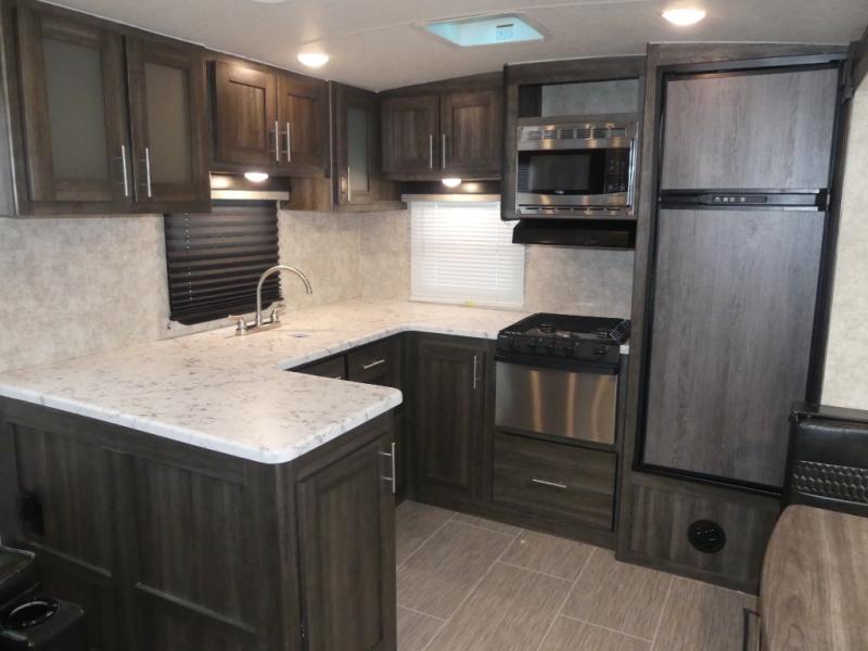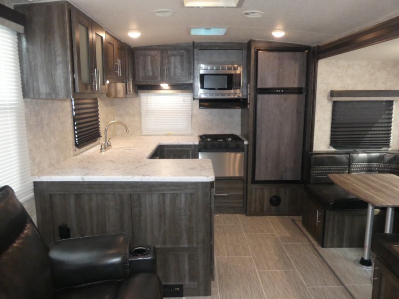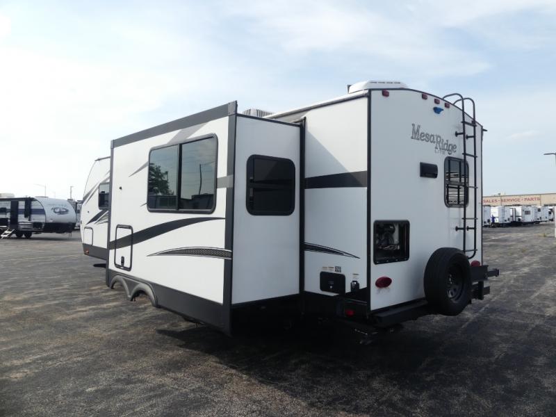 It's time to enjoy the great outdoors without missing out on your favorite interior comforts! This Mesa Ridge Lite travel trailer features a rear kitchen layout with plenty of counter space for you to prepare and serve meals. After making dinner, you can relax on the theater seats while watching the 39" LED TV or play cards at the U-shaped dinette. You also have the choice of cooking outside on the outdoor kitchen and quick access to the bathroom at night from the front master suite.