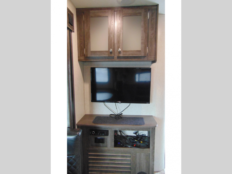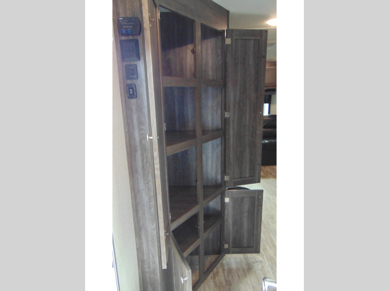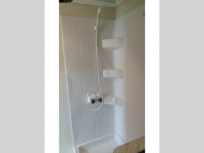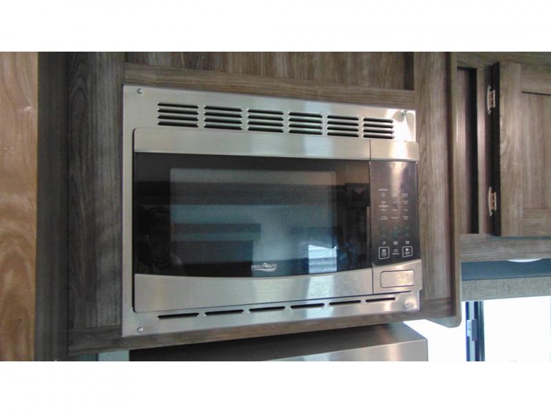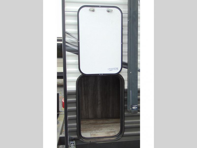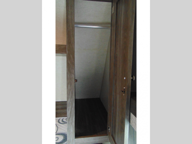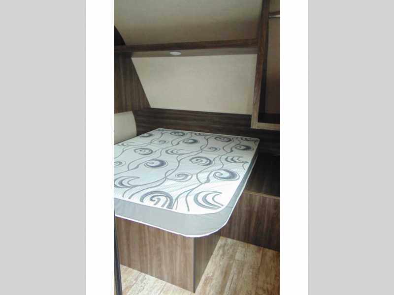 You can make meals, get cleaned up and sleep with your own accommodations anywhere you stop in this travel trailer. The cook will enjoy the full kitchen amenities across from the dinette slide, and the rear sofa is perfect to take a nap on. The furniture also provides extra sleeping space when needed. The front private bedroom provides a queen bed and quick access to the full bathroom at night. Don't worry about storage, you will find plenty throughout, plus the exterior pass-through compartment comes in handy for those larger items such as golf clubs, fishing poles, and such.