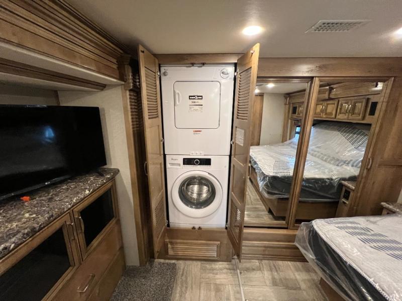 Whether you have a trip that will take you across the country or to your favorite vacation spot you will want a Holiday Rambler Navigator. These models have a Freightliner XCM Series chassis and a Cummins ISB 6.7L engine with a 340hp to ensure dependability when on the path less traveled. Along the exterior you will find durable features like the aerodynamic fiberglass cap with automotive headlights, a TPO roof, and dual pane large dark tinted frameless windows. You will also enjoy functional features like the 100 gallon fuel tank, the impressive exterior pass-through storage, and the on-demand water heater. Inside there are plenty of comforts throughout such as the Magnadyne M-10 10" touch screen stereo with navigation, a 19 cu. ft. stainless steel residential refrigerator, and an electric fireplace, plus a king Encore Series memory foam mattress with an adjustable head. Let a luxury Holiday Rambler Navigator class A diesel motorhome be your home on wheels where the scenery changes but the comforts from inside stay the same!