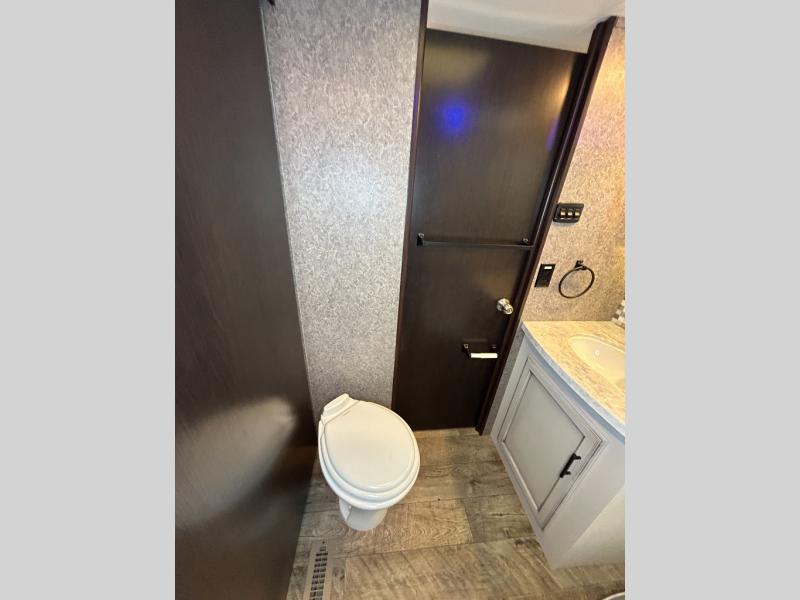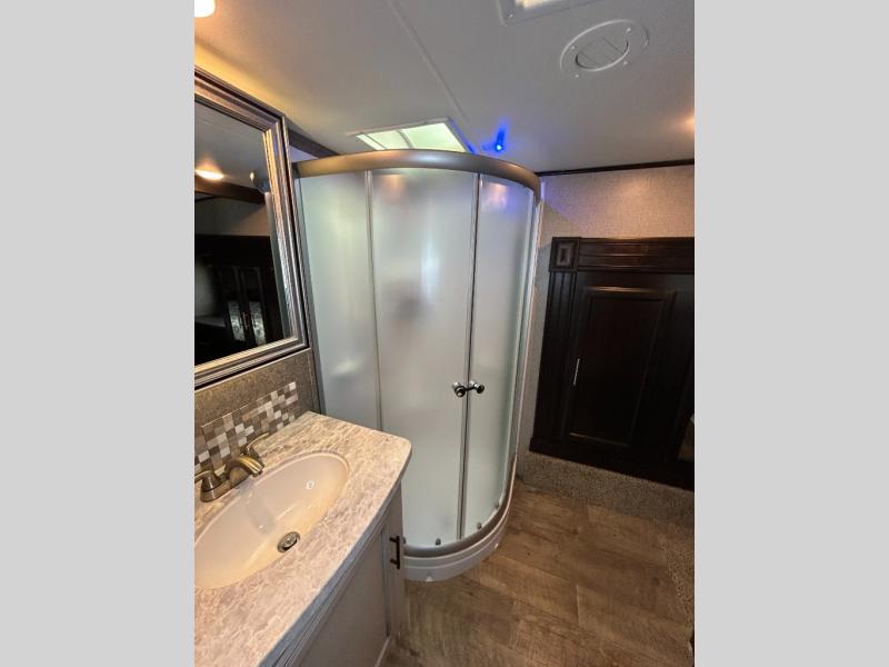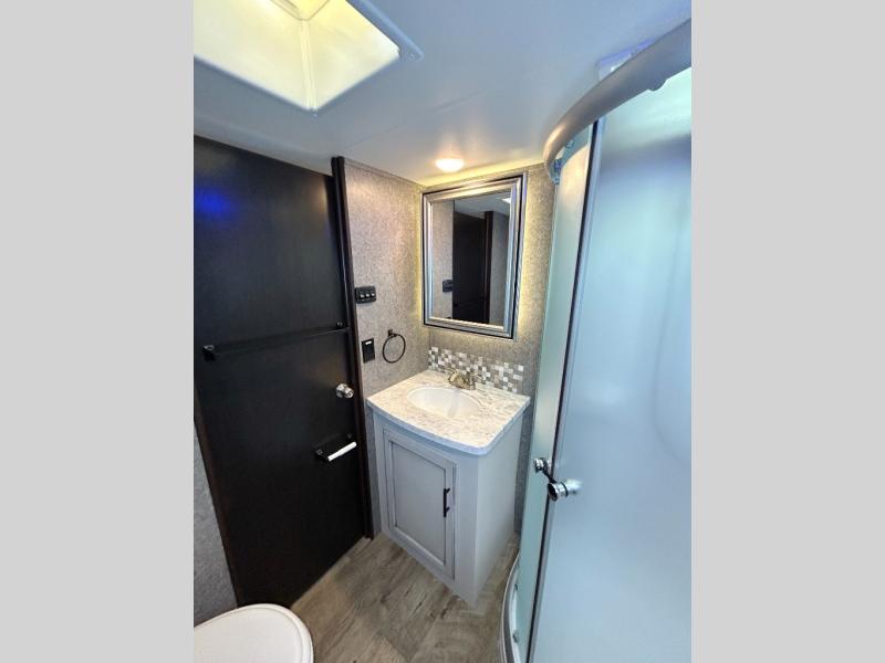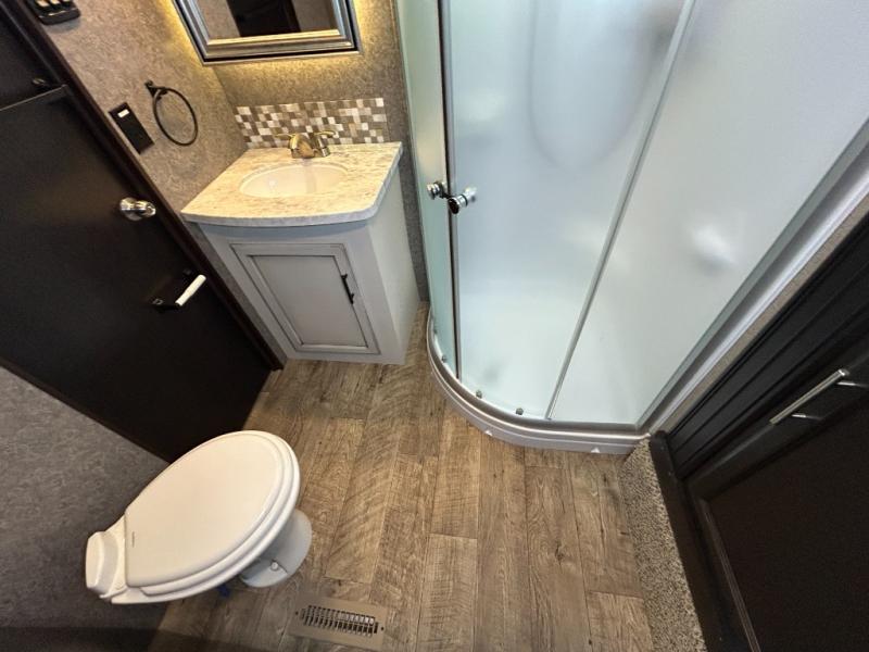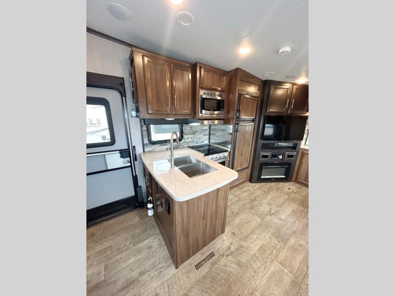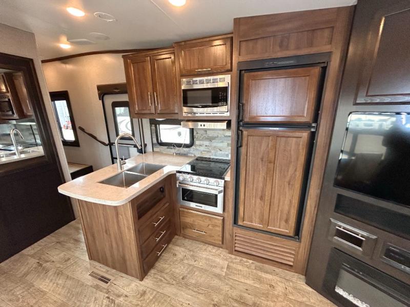 For any camping trip you will want an Eagle HT fifth wheel by Jayco. Along the exterior there is a high-gloss, fiberglass front cap with built-in specialty LED lighting. Inside each model there are handcrafted glazed drawers and Shaw residential carpet with R2X stain guard plus IVC Trekk wood-plank vinyl flooring. The industry exclusive HELIX cooling system is an added bonus with Jayco-exclusive insulated duct design, directional and closeable A/C vents, larger return air vents, and the exterior-mounted 15,000 BTU Whisper quiet A/C unit. The Customer Value Package includes a residential queen Simmons mattress with under-bed storage, an electric patio awning with integrated LED lights, MORyde CRE 3000 rubberized suspension for a smoother ride, a rain proof EZ Breeze bathroom power vent, an industry first Go Power rooftop and ground solar prep, plus so much more!