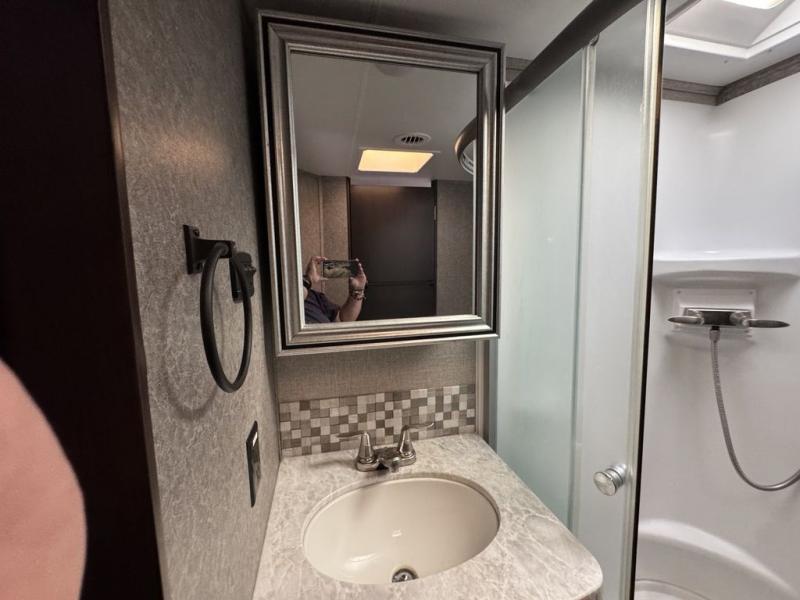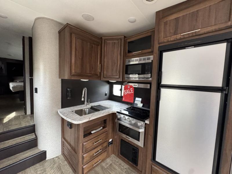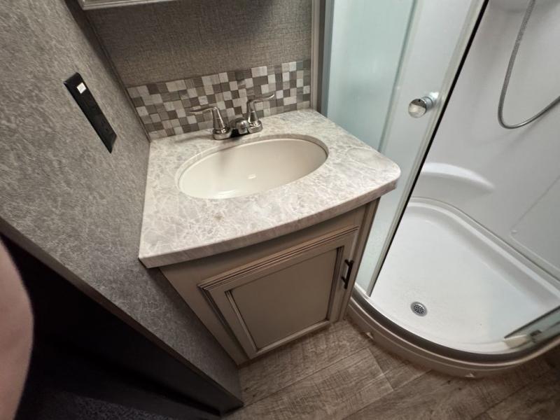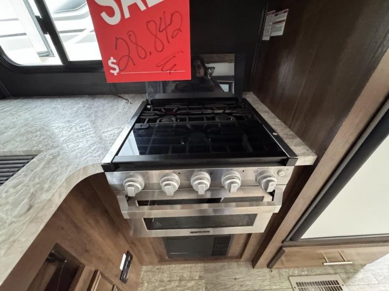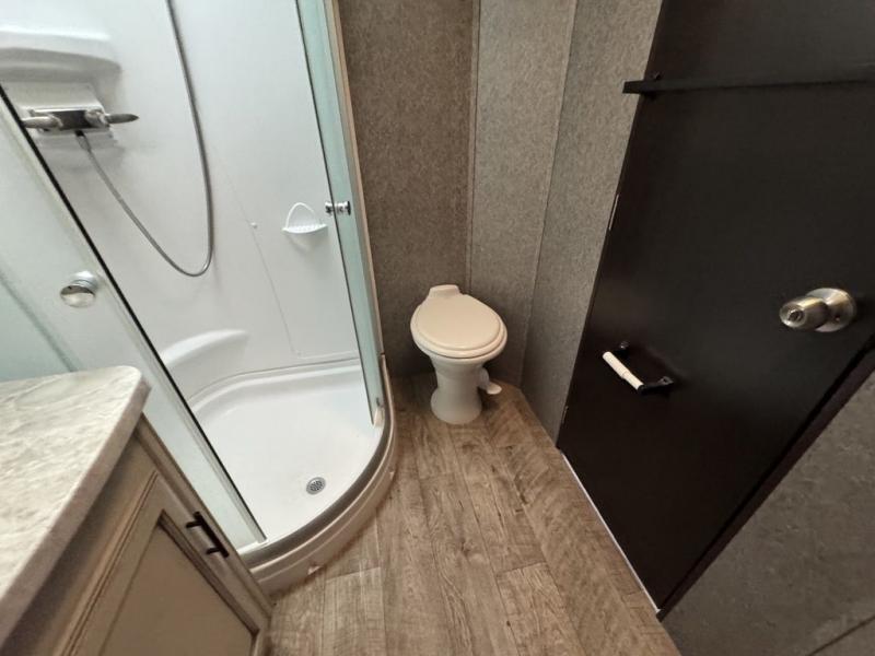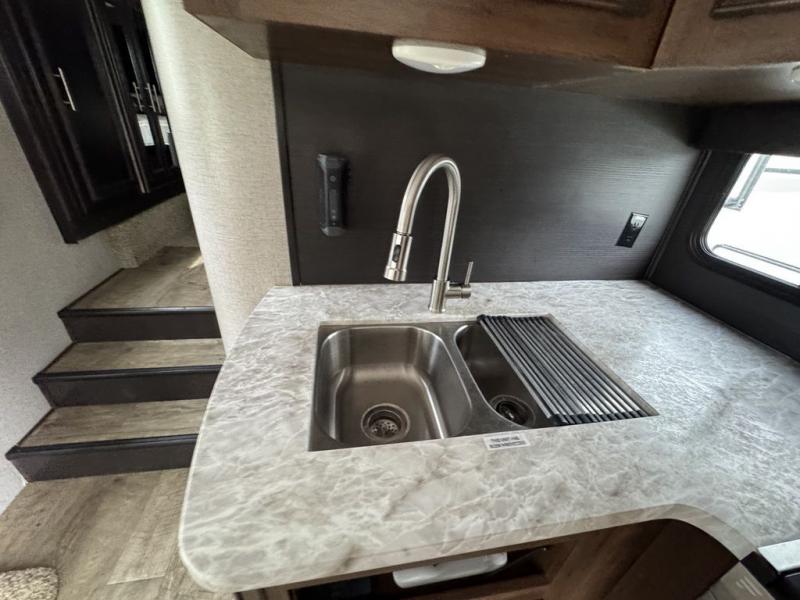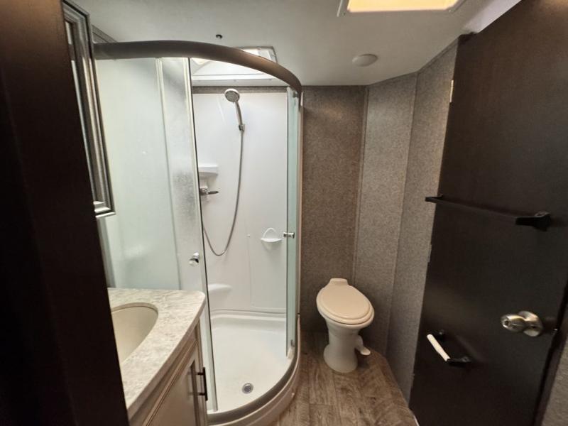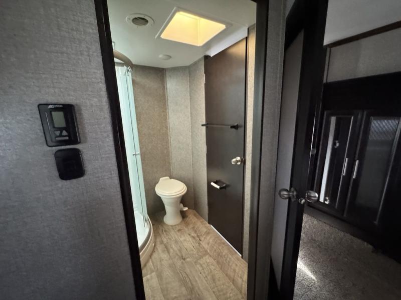 For any camping trip you will want an Eagle HT fifth wheel by Jayco. Along the exterior there is a high-gloss, fiberglass front cap with built-in specialty LED lighting. Inside each model there are handcrafted Sugar Maple glazed drawers. Throughout each model there is Shaw residential carpet with a sound dampening carpet pad plus IVC Trekk wood-plank vinyl flooring. The industry exclusive HELIX cooling system is an added bonus with the Jayco-exclusive insulated duct design, directional and closeable A/C vents, larger return air vents, and the exterior-mounted 15,000-BTU Whisper Quiet A/C unit. The Customer Value Package includes a residential queen Simmons mattress with under-bed storage, an electric patio awning with integrated LED lights, MOR/ryde CRE/3000 rubberized suspension for a smoother ride, a rain proof EZ Breeze bathroom power vent, an industry first Go Power rooftop and ground solar prep, and so much more!