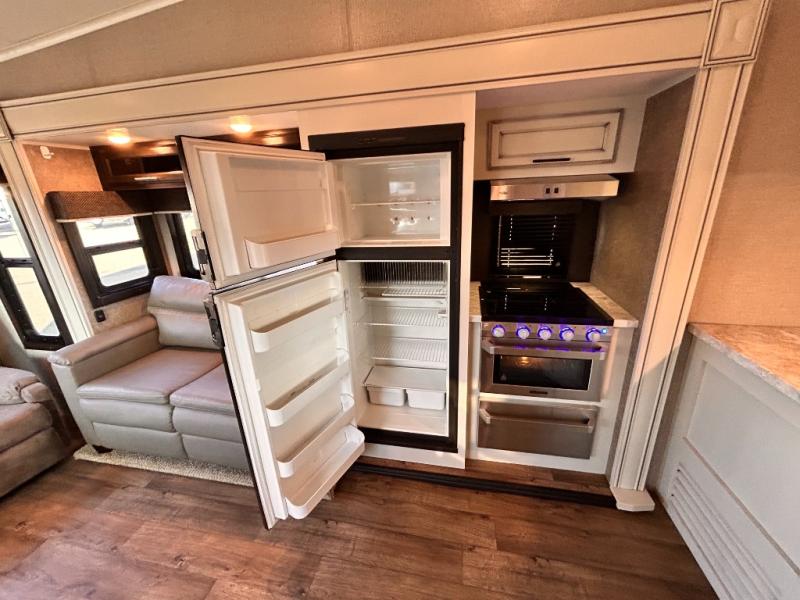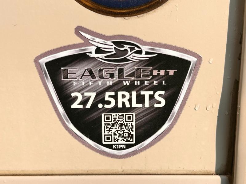 This Eagle HT 27.5RLTS fifth wheel by Jayco offers a rear living area plus plenty of room throughout with triple slide outs. In the kitchen there is a large counter area along the interior wall, and within the slide out you will find the appliances needed to prepare and store food from the three burner range to the 8 cu. ft. refrigerator. In the private front bedroom there is a queen bed with a Simmons mattress, and a slide out with storage. Outside you can enjoy the shade from the 14' electric awning with LED lights plus there is exterior storage for your extra camping gear and more!