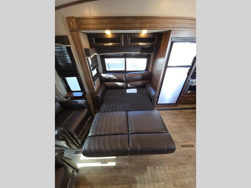 Do you want a camping trip with luxurious features from home? Well then, this Jayco Eagle HT 27SGX fifth wheel has you covered! In the entertainment center, you can choose to sit back in either one of the recliner chairs or lounge on the tri-fold sofa. A double entry bath makes those late night trips a little easier to access. Throughout the fifth wheel there is LED lighting to brighten your trip. When you're ready to hit the sack, you will enjoy jumping into the comfortable queen bed with night stands on either sides or you could keep the night going underneath the 14' electric awning with LED lights.