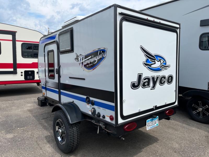 Image the flexibility of being able to camp anywhere and at anytime. Now you can easily do so with this Jayco Hummingbird 10RK travel trailer. After you are done playing outdoors then come relax on the full sized bed. There is a convenient two way 12V/110V LED TV and a refrigerator for your perishables. The kitchen is located outside along the rear of this model and you'll enjoy two marine grade exterior speakers so you can cook dinner with the music up!
