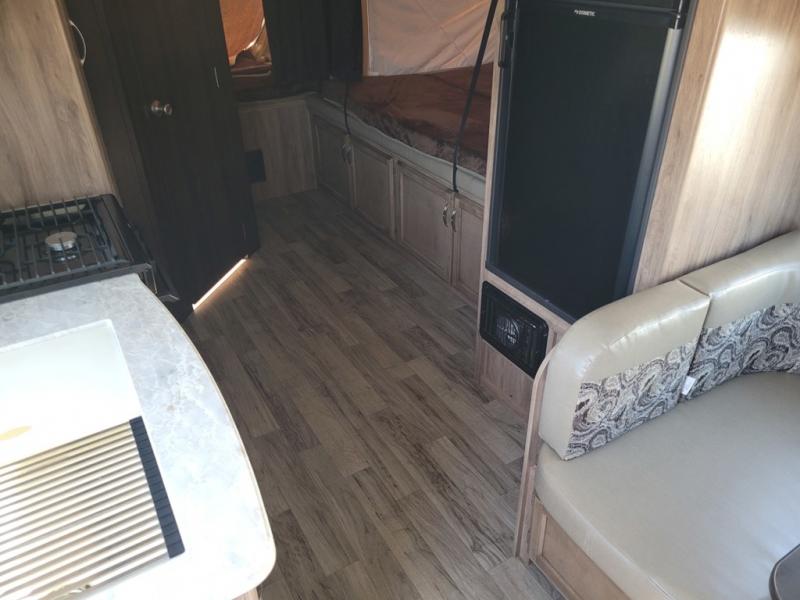 When you choose a Jay Feather expandable you can rest assured that you have chosen quality construction with features such as an aerodynamic, rounded front profile with front diamond plate plus there are vacuum-bonded, laminated bed platforms with reverse-cambered support of 1,000-lb. capacity, plus water-repellent, scratch-resistant Jayco DuraTek vinyl tent material with zipper windows. Inside you will find full kitchen amenities, LED lighting throughout, and ball-bearing drawer glides with 75-lb. capacity. The mandatory Customer Value Package includes features such as American-made nitro-filled Goodyear radial tires with self-adjusting brakes, a power awning with LED lights, an outside shower, plus AM/FM/CD/DVD/Bluetooth stereo and more! For your next camping trip, come choose a Jay Feather expandable!