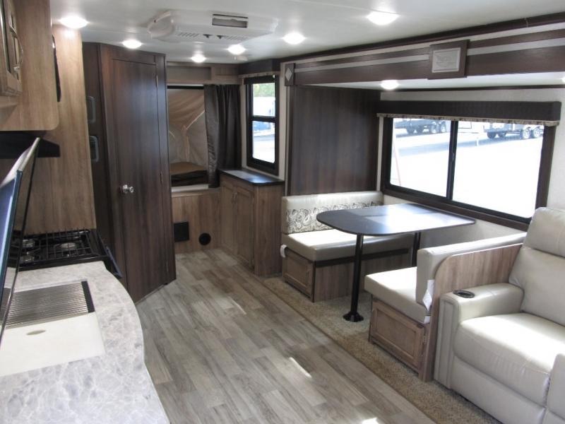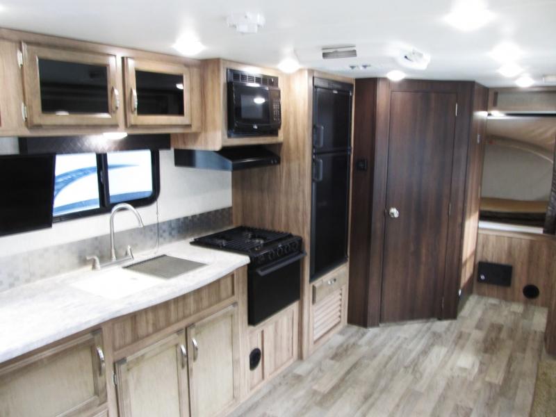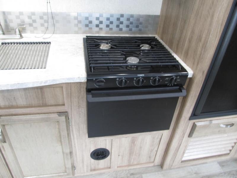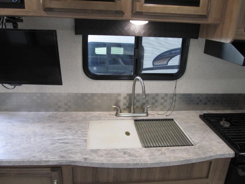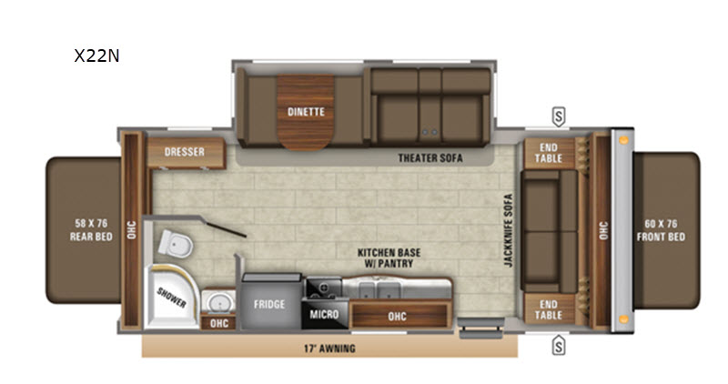 Been thinking about taking the family camping but you aren't sure what type of RV you would like? Why not start with this Jayco Jay Feather expandable X22N that easily sleeps eight people. Sleeping space can be found on the rear full tent end bed and the RV queen tent end bed up front, plus on the furniture. After eating dinner someone can wash dishes in the large double sink while everyone else visits inside or outside under the 19' awning. This model also includes theater seating to relax like you do at home! Take a look at what all you will enjoy each time you head out.