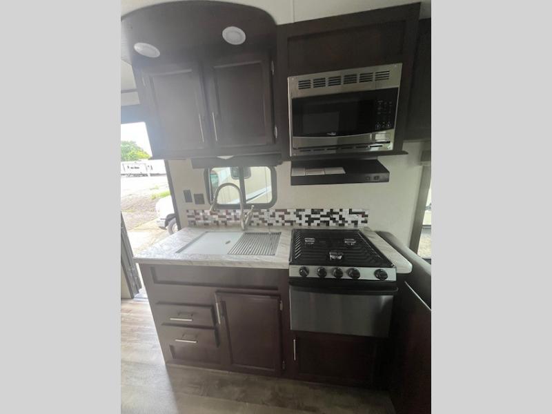 Imagine camping with your spouse at a local state park or your RV favorite destination. Now imagine relaxing on a queen bed, getting cleaned up in the full bath, and making meals in the kitchen. This Jay Flight 21QB even offers a dinette to play games, dine, or visit, or choose the sofa to read a book and relax. You have everything you need for comfortable traveling, and enjoying the great outdoors!