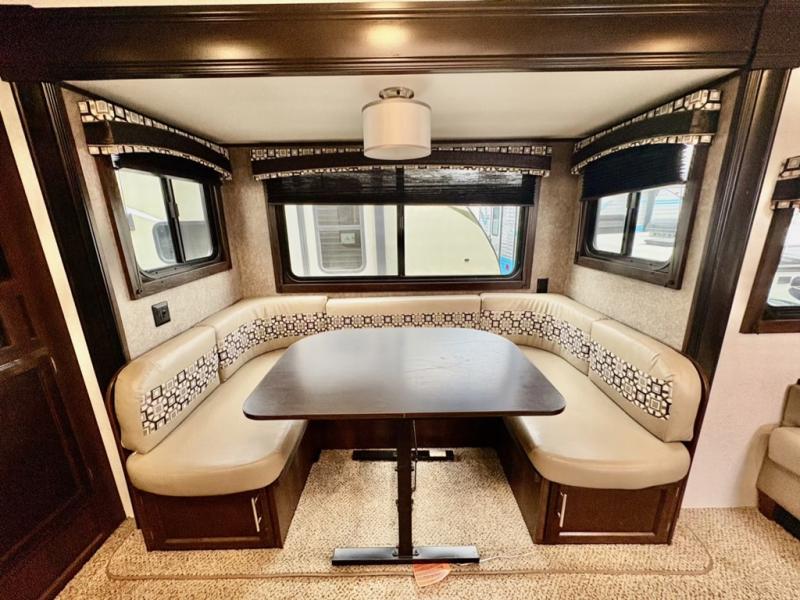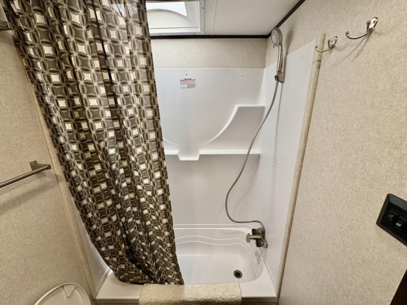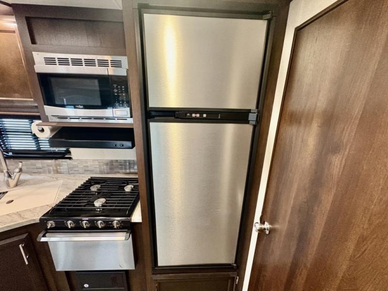 Imagine camping with your spouse and your kids at your favorite RV park. Now picture yourself getting cleaned up before dinner in the full bath, and making meals in the kitchen. This Jay Flight even offers a U-shaped dinette to play games, dine, or use as sleeping space for the kids along with the sofa. The cook may even like making meals outside on the pull-out camp kitchen. You have everything you need for a comfortable trip while enjoying the great outdoors!