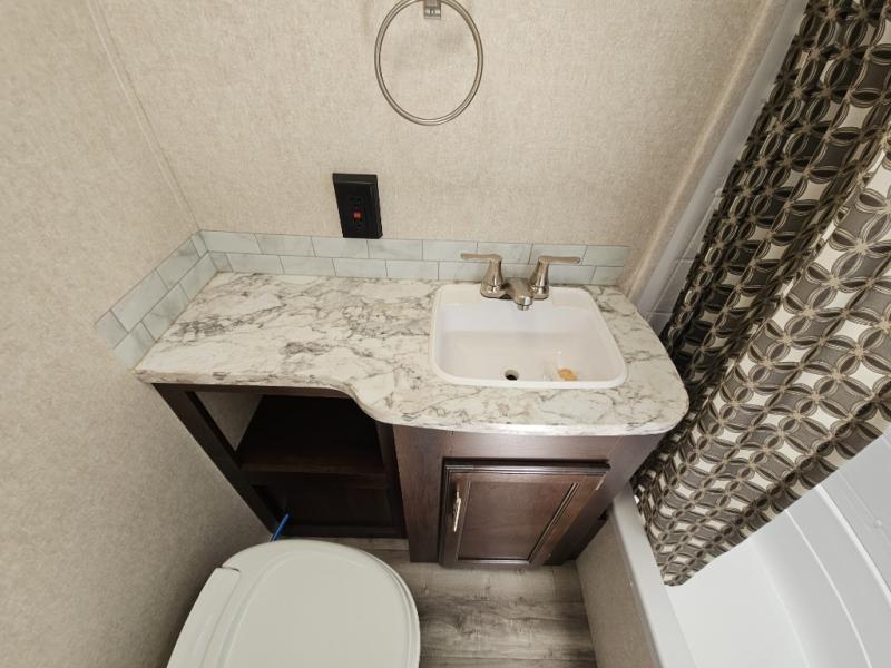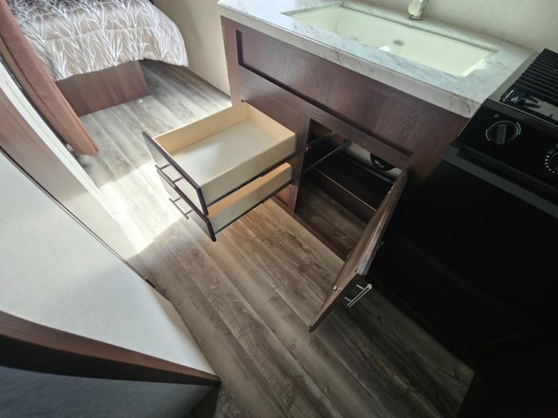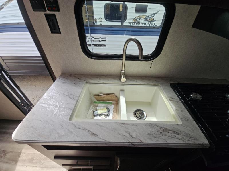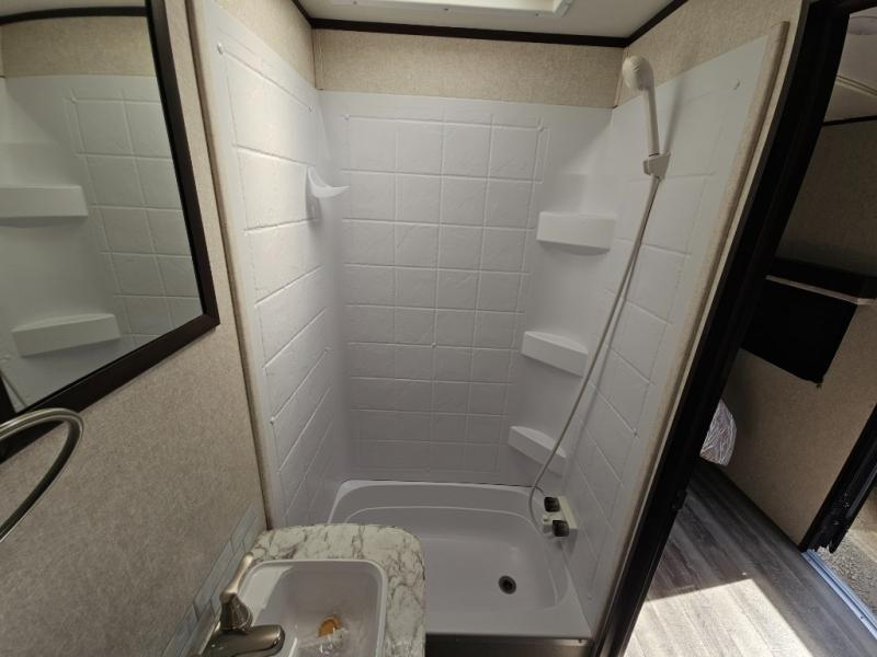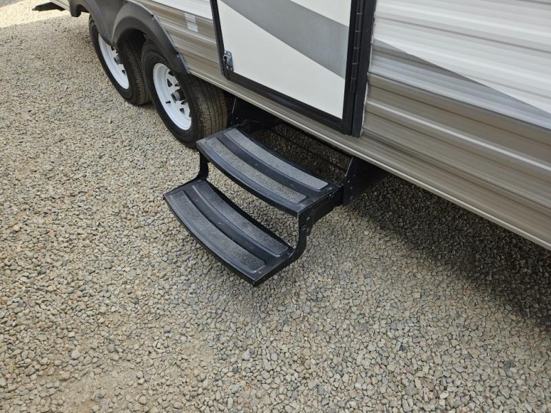 With any Jayco Jay Flight SLX 8 you will appreciate the 8-foot wide body, the reliability of the Goodyear tires made with galvanized steel and impact-resistant wheel wells, and the handy Keyed-Alike entrance, plus baggage doors for protection on the road. You will also appreciate the spacious exterior storage for you to easily access your camping gear. Inside you will find modern kitchen appliances including a three burner range with a 9,000 BTU Super Burner and piezo igniter, a Norcold refrigerator, and a microwave oven. In every model, there is a queen Simmons mattress to re-charge for your next adventurous day, and there is also a bathroom skylight to let in some natural lighting. Come see which model fits your lifestyle the best!