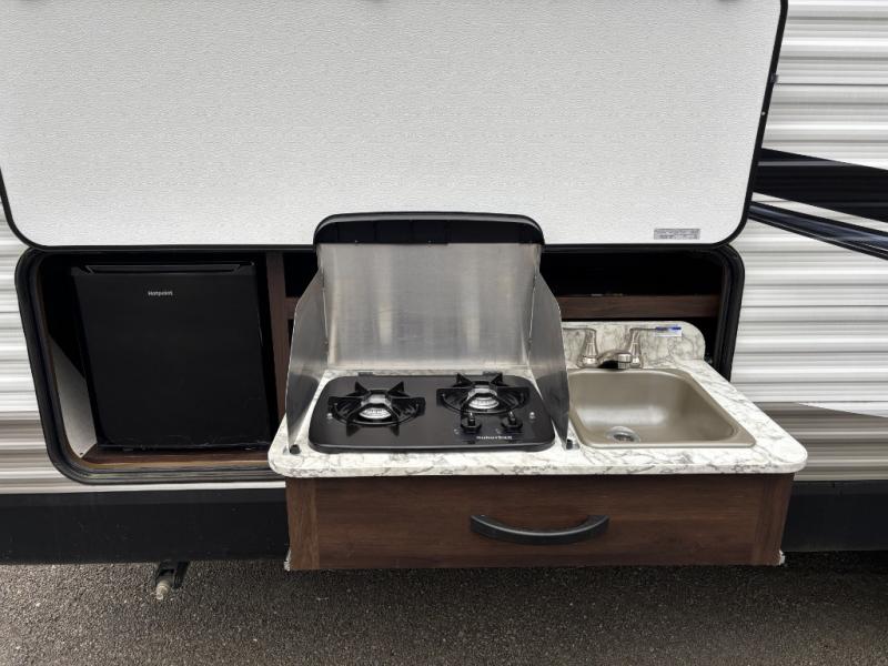 It's time to imagine you sleeping on a queen size Simmons mattress in your own semi-private front bedroom while the kids relax on the double size bunk beds on the opposite side of the trailer. When morning comes you can gather around the U-shaped dinette for breakfast and relax on the J-steel jackknife sofa or the bench with storage. This Jay Flight SLX 8 284BHS even gives the chef a choice to cook outside on the outdoor kitchen and eat under the 16' power awning. You will also have full indoor kitchen and bath amenities! Step inside today!