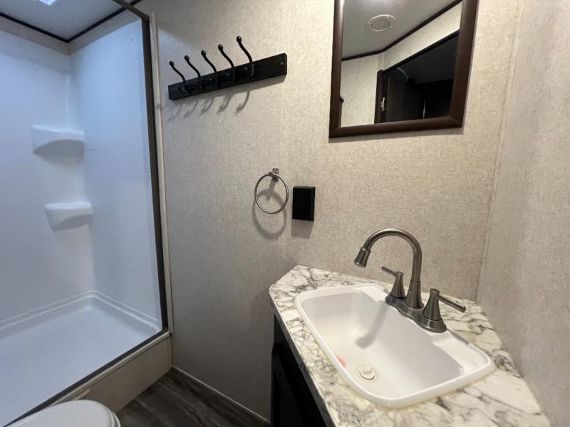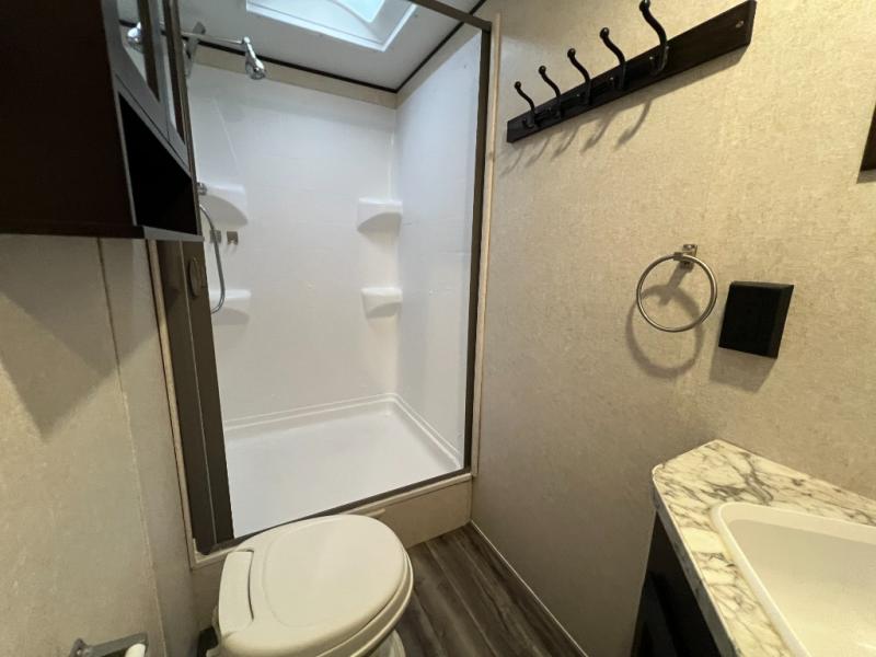 With any Jayco Jay Flight SLX 8 you will appreciate the 8-foot wide body, the reliability of the Goodyear tires made with galvanized steel and impact-resistant wheel wells, and the handy Keyed-Alike entrance, plus baggage doors for protection on the road. You will also appreciate the spacious exterior storage for you to easily access your camping gear. Inside you will find modern kitchen appliances including a three burner range with a 9,000 BTU Super Burner and piezo igniter, a Norcold refrigerator, and a microwave oven. In every model, there is a queen Simmons mattress to re-charge for your next adventurous day, and there is also a bathroom skylight to let in some natural lighting. Come see which model fits your lifestyle the best!