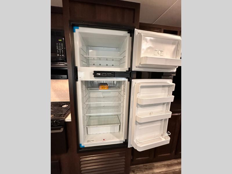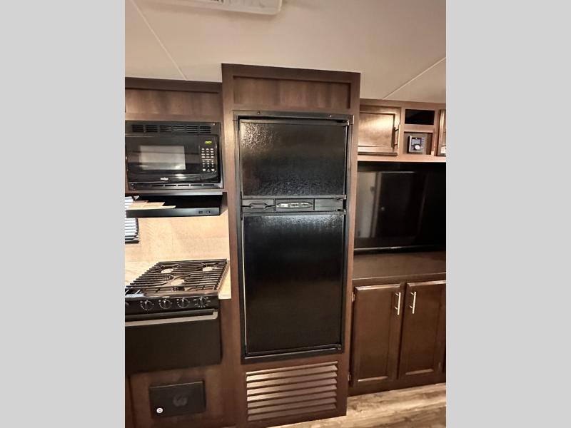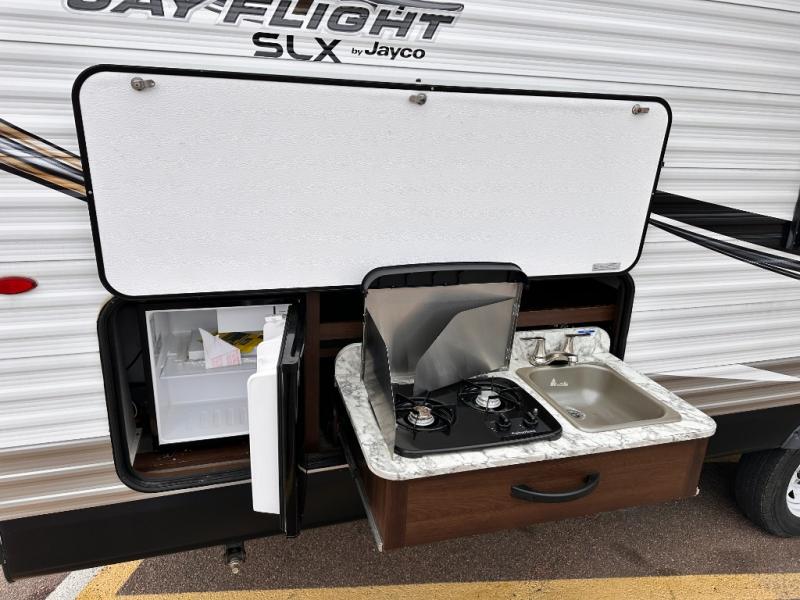 With any Jayco Jay Flight SLX 8 you will appreciate the 8-foot wide body, the reliability of the Goodyear tires made with galvanized steel and impact-resistant wheel wells, and the handy Keyed-Alike entrance, plus baggage doors for protection on the road. You will also appreciate the spacious exterior storage for you to easily access your camping gear. Inside you will find modern kitchen appliances including a three burner range with a 9,000 BTU Super Burner and piezo igniter, a Norcold refrigerator, and a microwave oven. In every model, there is a queen Simmons mattress to re-charge for your next adventurous day, and there is also a bathroom skylight to let in some natural lighting. Come see which model fits your lifestyle the best!
