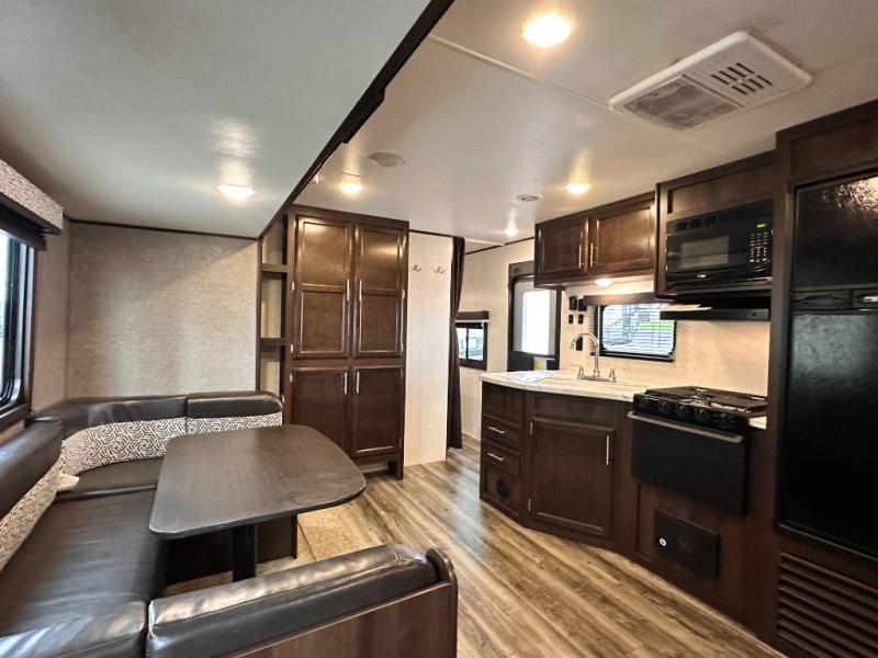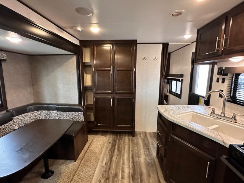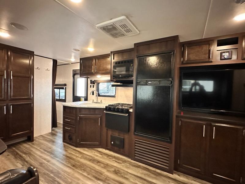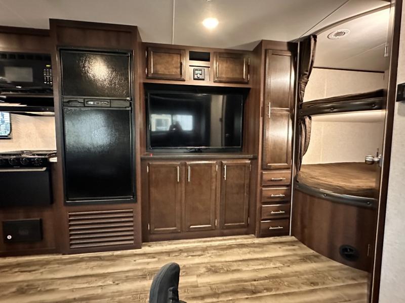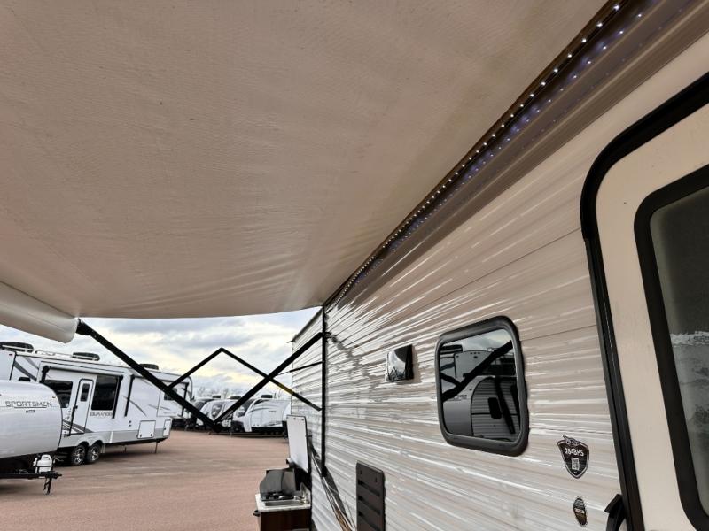 It's time to imagine you sleeping on a queen size Simmons mattress in your own semi-private front bedroom while the kids relax on the double size bunk beds on the opposite side of the trailer. When morning comes you can gather around the U-shaped dinette for breakfast and relax on the J-steel jackknife sofa or the bench with storage. This Jay Flight SLX 8 284BHS even gives the chef a choice to cook outside on the outdoor kitchen and eat under the 16' power awning. You will also have full indoor kitchen and bath amenities! Step inside today!